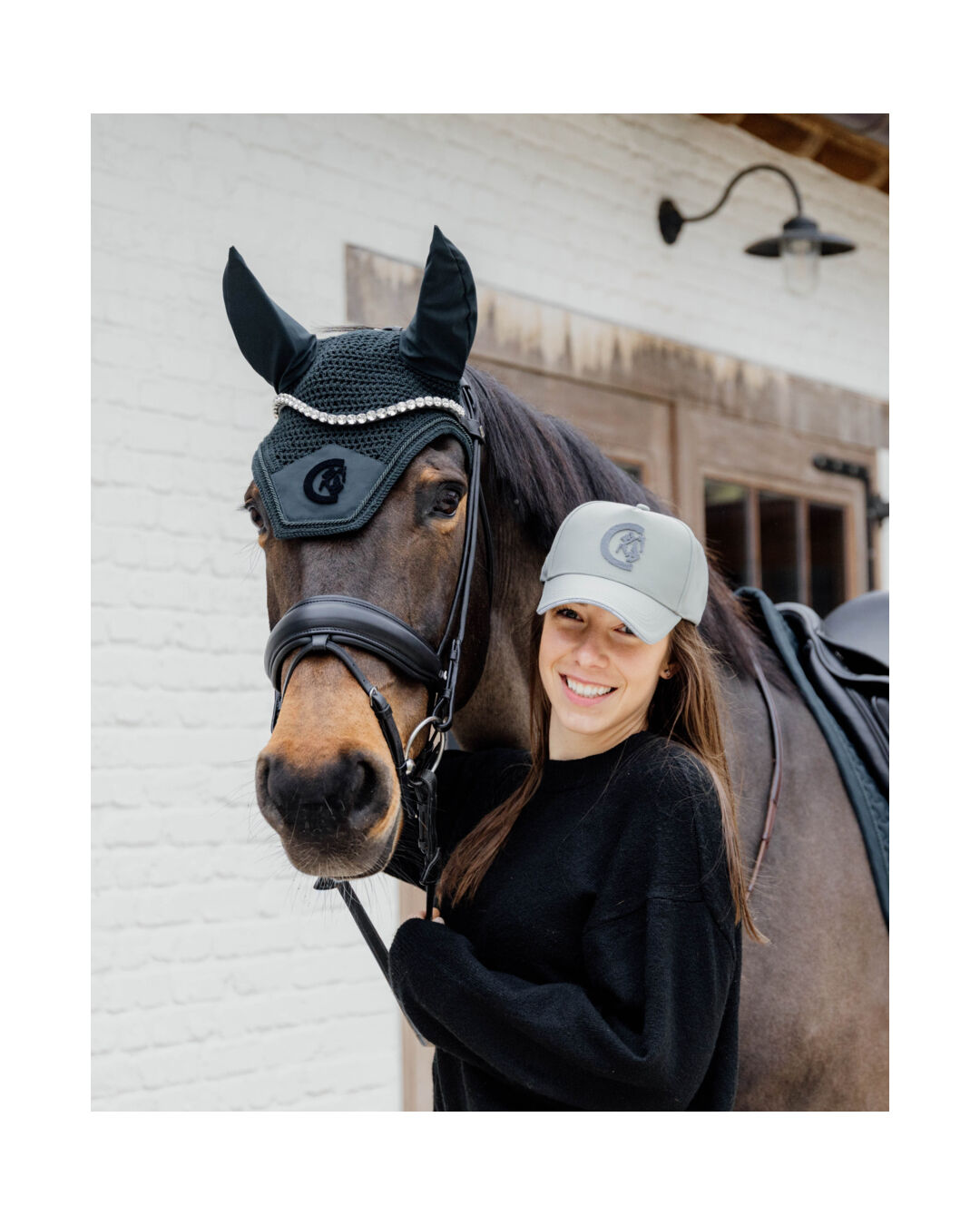 Diese Premium-Fliegenhaube Wellington 3D Logo Soundless von Kentucky schützt die Ohren deines Pferdes effektiv vor lästigen Fliegen, während du reitest.