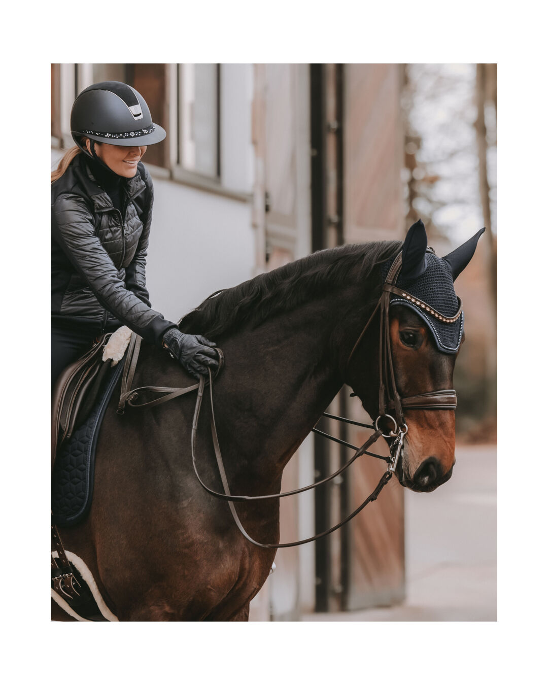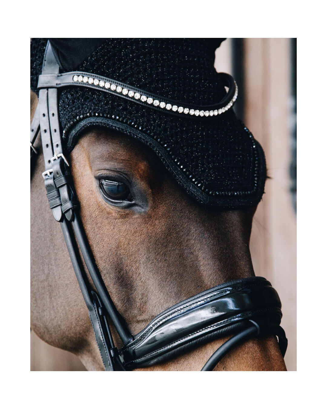 Die Fliegenhaube Wellington Glitter Band von Kentucky kombiniert stilvolles Design mit höchster Funktionalität – der perfekte Schutz für die Ohren deines Pferdes beim Reiten.