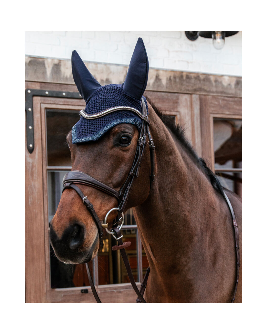 Verleihe deinem Pferd den ultimativen Schutz und einen Hauch von Glamour mit der Kentucky Wellington Glitter Stone Soundless Fliegenhaube.