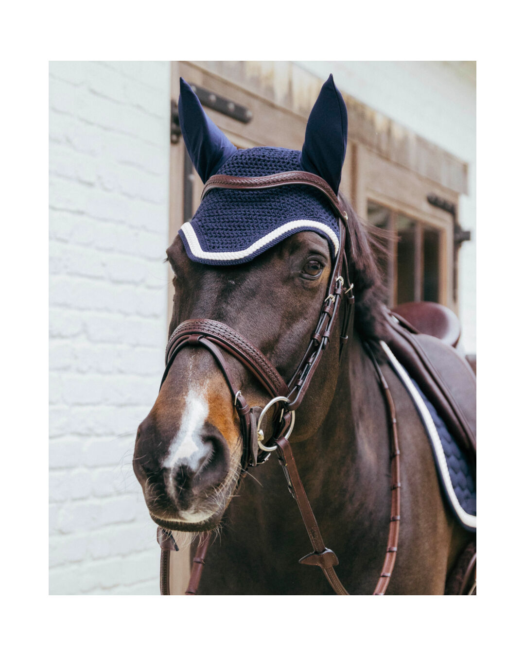 Handgestrickt aus hochwertigen Materialien, punktet diese Fliegenhaube mit einer eleganten geflochtenen Kordel, die sich vom Rest der Fliegenhaube abhebt und ihr einen zeitlosen Look verleiht. Das verlängerte Nackenstück sorgt dafür, dass die Haube sicher an ihrem Platz bleibt und beim Reiten nicht verrutscht. Die elastischen, schmal geschnittenen Ohren garantieren eine optimale Passform und hohen Tragekomfort für dein Pferd.