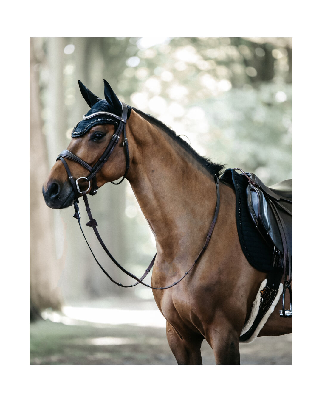 Verleihe deinem Pferd einen Hauch von Eleganz und Schutz mit der Fliegenhaube Wellington Stone & Pearl von Kentucky.