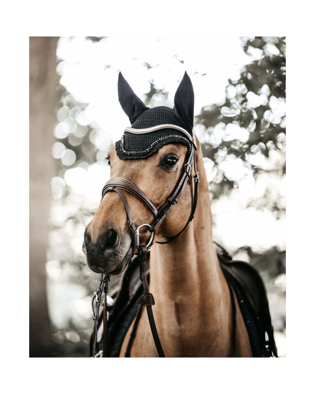 Verleihe deinem Pferd einen Hauch von Eleganz und Schutz mit der Fliegenhaube Wellington Stone & Pearl von Kentucky.