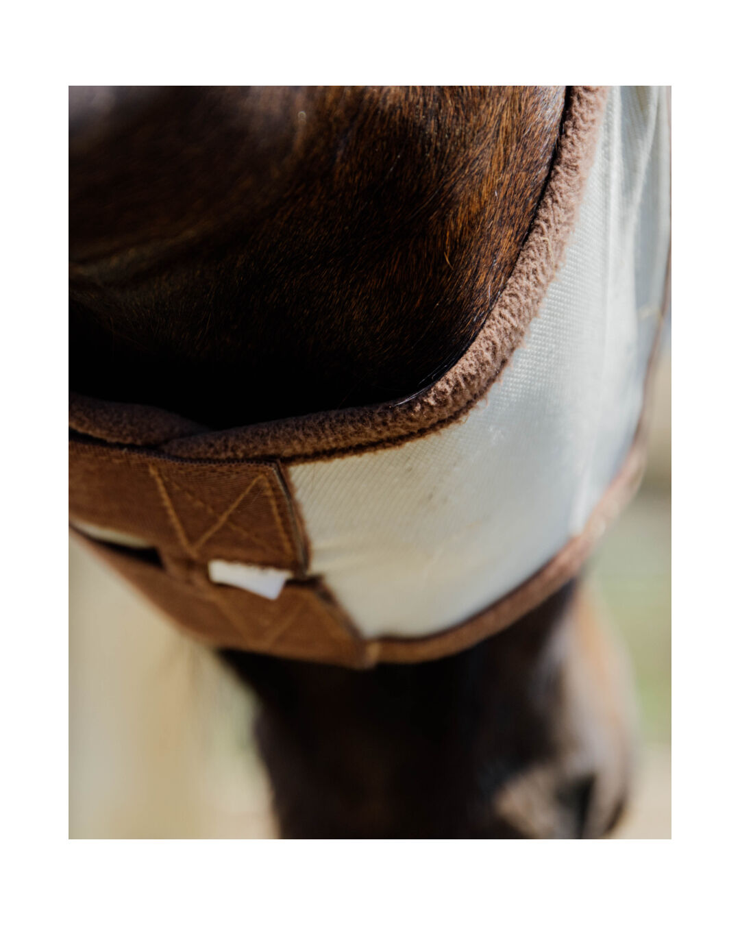 Besonders praktisch für Zuchtstuten oder Pferde, die viel draußen sind: Diese Maske ist weich gepolstert, scheuerfrei und so bequem, dass dein Pferd sie problemlos den ganzen Tag tragen kann.
