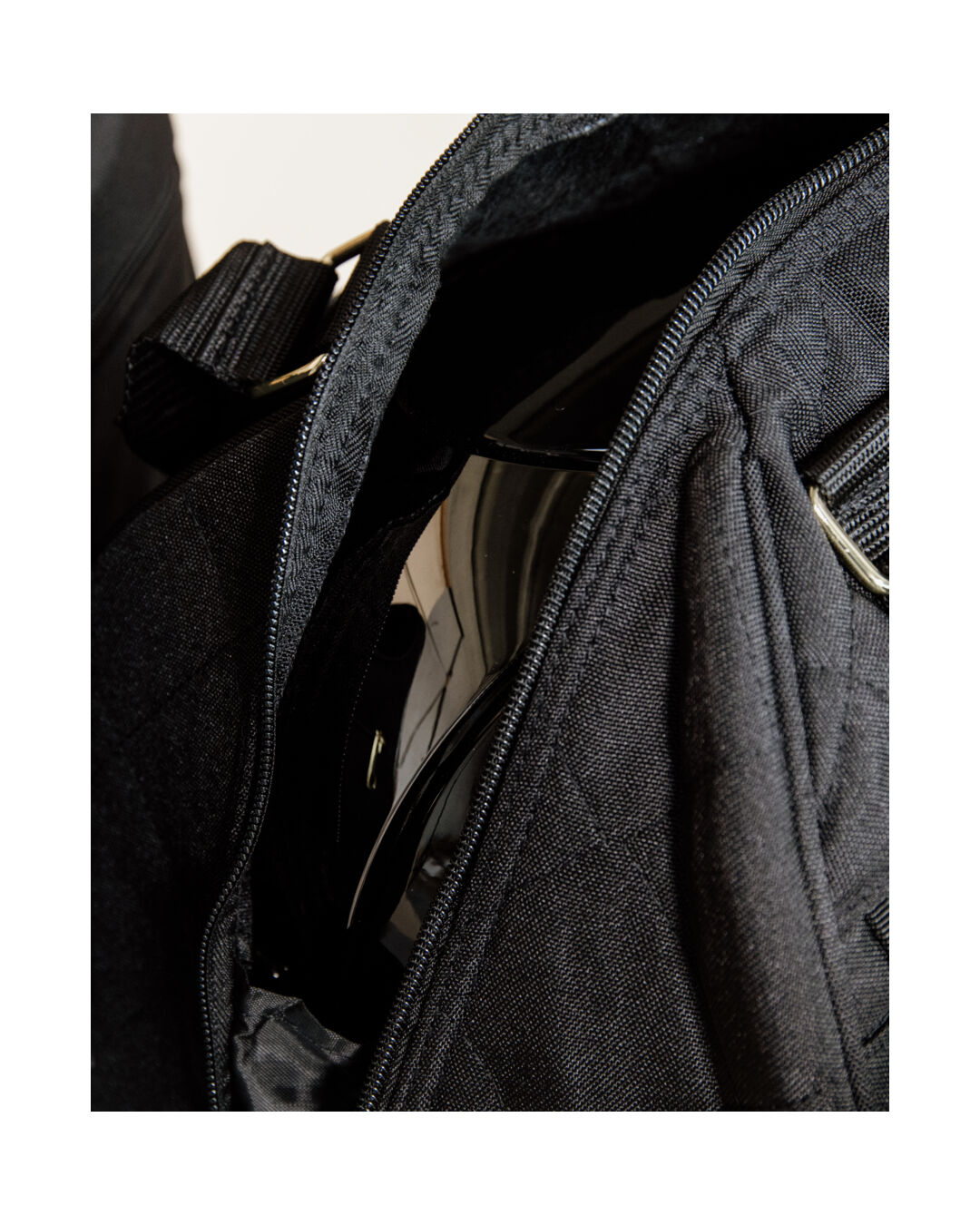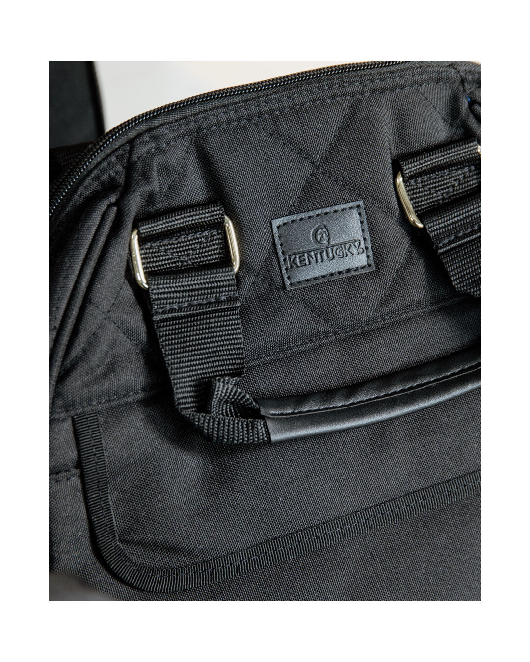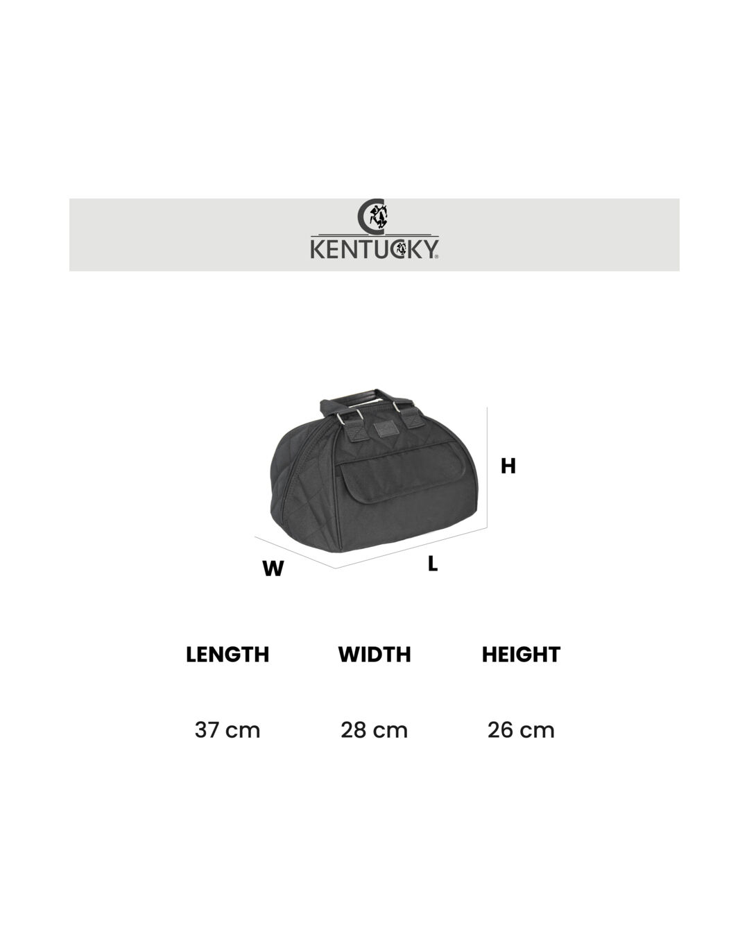 Die Tasche ist in den klassischen Farben erhältlich und harmoniert perfekt mit jedem Outfit und allen Kentucky-Reiseprodukten. Mit den Maßen von 37 cm x 26 cm x 28 cm bietet sie ausreichend Platz für Helme verschiedener Größen. Eine praktische Vordertasche mit Druckknöpfen ermöglicht es dir, kleinere Gegenstände wie Handschuhe oder Schlüssel stets griffbereit zu haben.