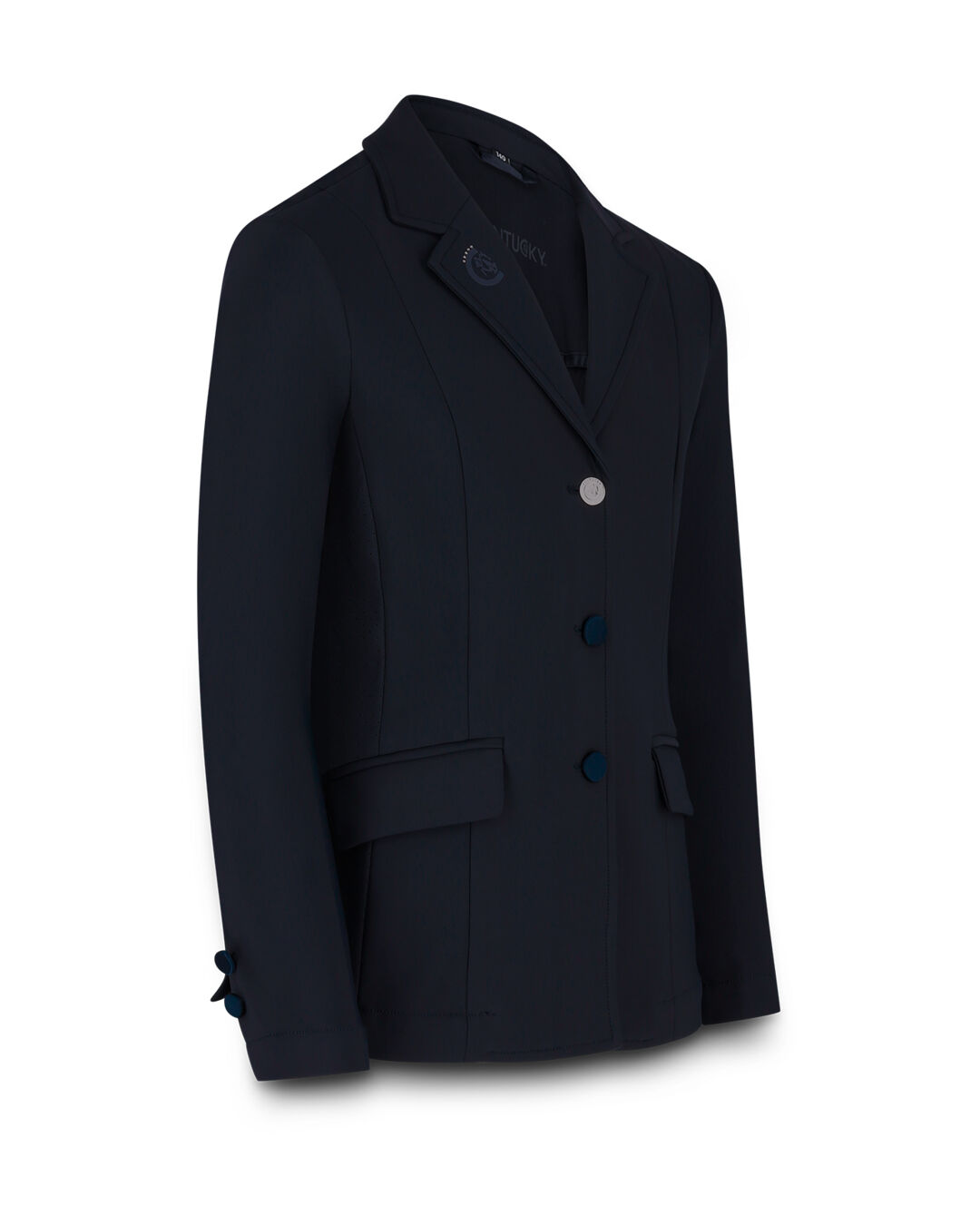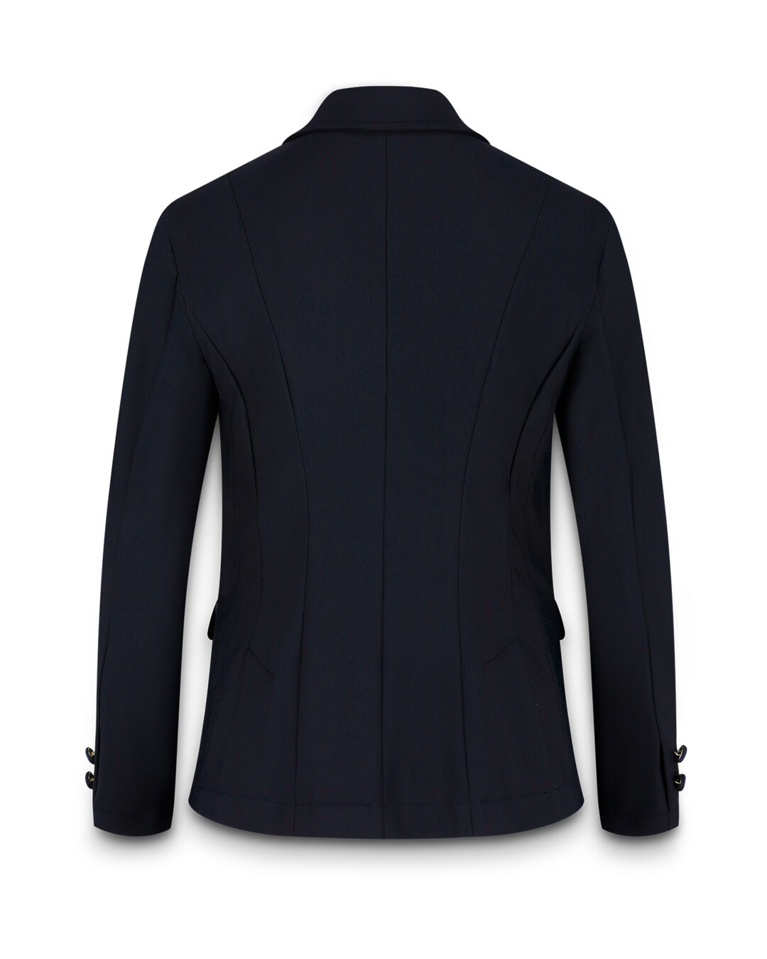Der markentypische Knopf vorn rundet das Design stilvoll ab. Dieses Turnierjacket ist wie gemacht für Reiterinnen, die sportliche Leistung mit einem Hauch Glamour kombinieren wollen.