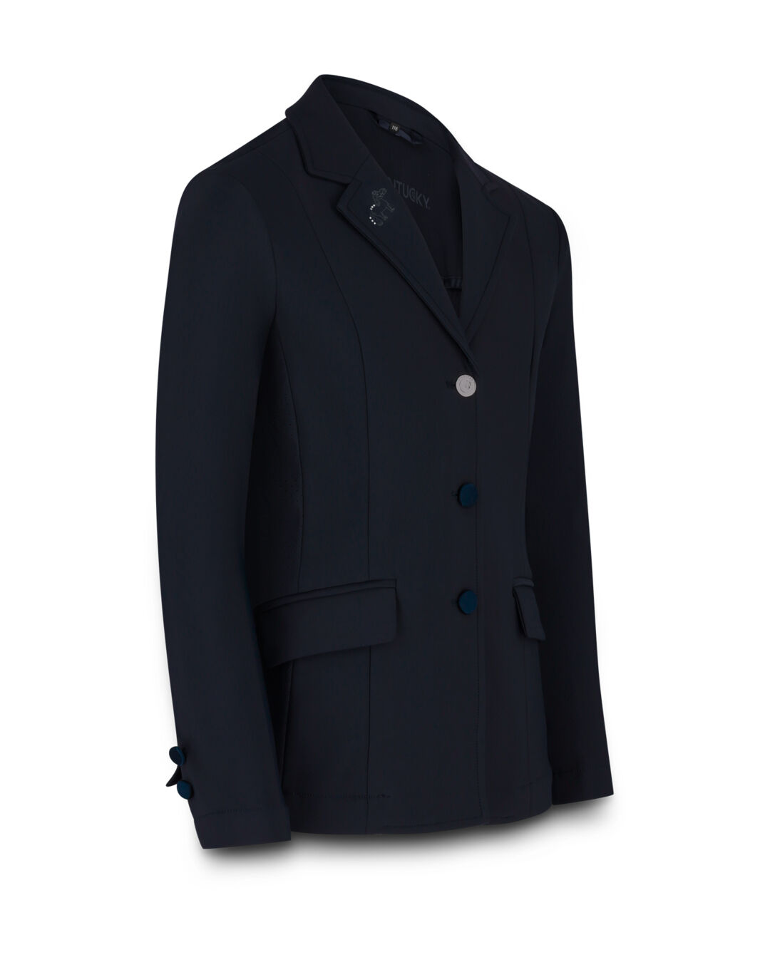 Abgerundet wird das Turnierjacket durch den ikonischen Kentucky-Knopf in abgestimmter Farbe. Für alle Mädchen, die im Viereck glänzen wollen – nicht nur wegen ihrer Reitkunst.