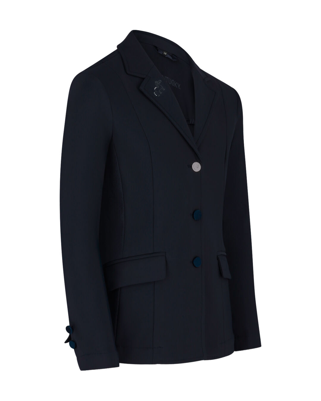 Abgerundet wird das Turnierjacket durch den ikonischen Kentucky-Knopf in abgestimmter Farbe. Für alle Mädchen, die im Viereck glänzen wollen – nicht nur wegen ihrer Reitkunst.