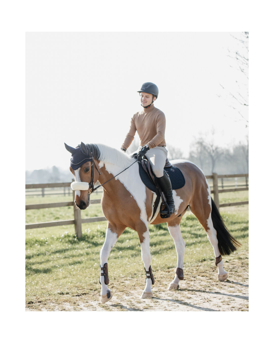 Erhältlich in den klassischen Farben, fügt sich der Schoner harmonisch in jede Ausrüstung ein. Neben dem Schutz für die Nase deines Pferdes, bewahrt er auch das Leder des Halfters vor Schweiß und Schmutz. Ein weiterer Pluspunkt: Das tierfreundliche Kunstfell bietet eine nachhaltige Alternative zu echtem Lammfell, ohne auf Komfort zu verzichten.