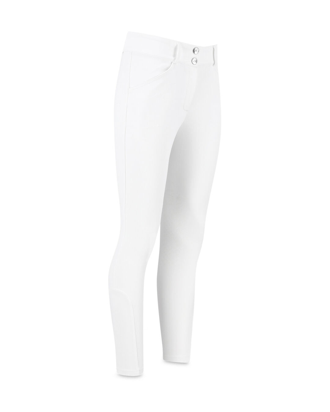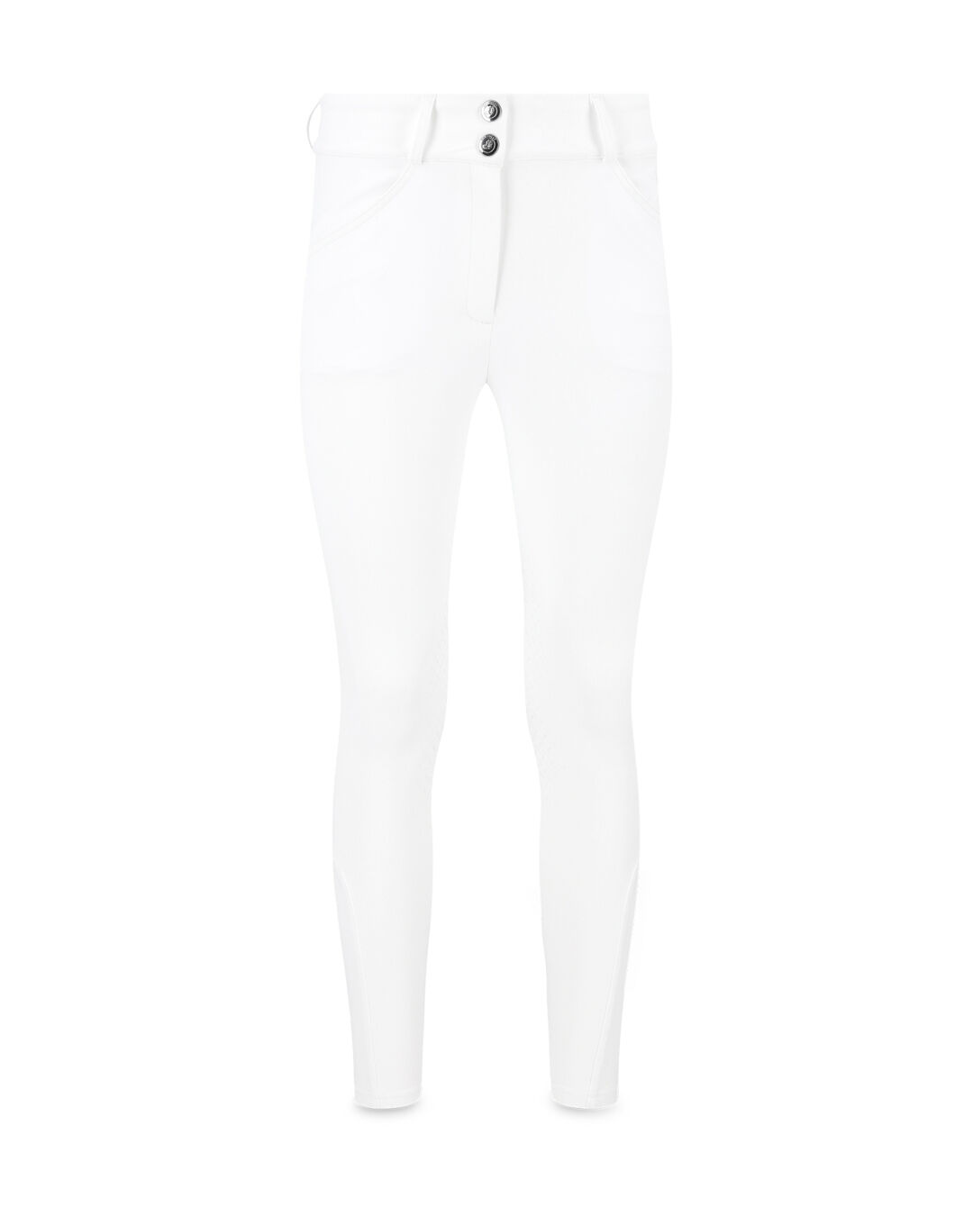 Feine Details wie der ikonische Markenknopf, dezente Logos und ein schlanker Schnitt machen diese Reithose zu deinem zuverlässigen Partner – sportlich, feminin und funktional bis ins Detail.