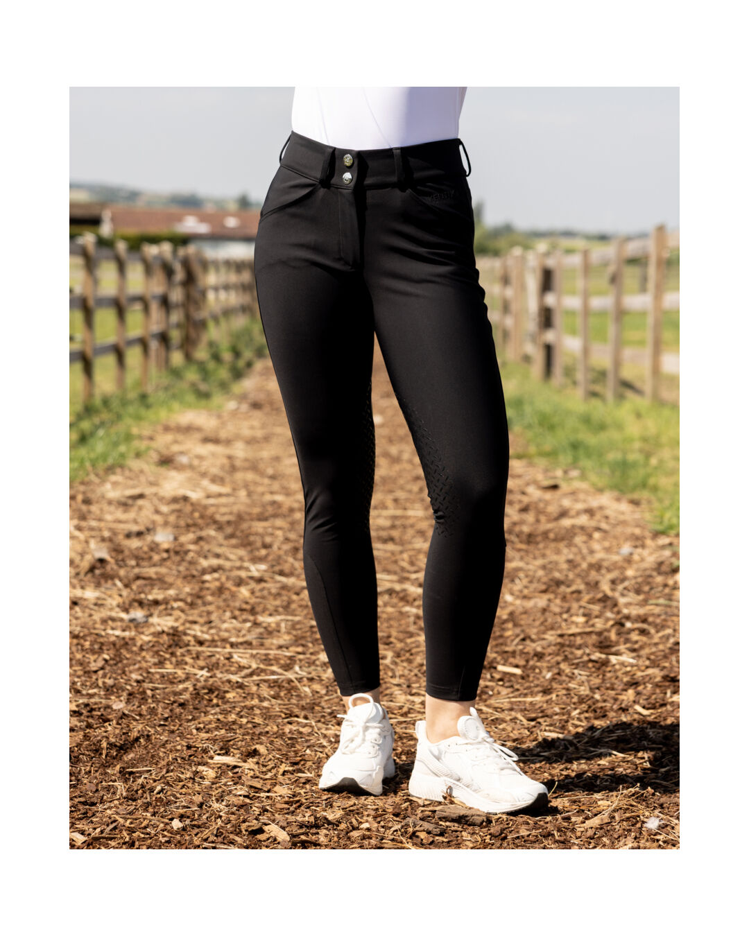 Das atmungsaktive, dehnbare Material liegt angenehm auf der Haut, passt sich deiner Figur optimal an und macht jede Bewegung mit – für ein Reitgefühl ohne Ablenkung. Der kniebezogene Grip gibt dir genau die richtige Portion Halt im Sattel, ohne deine Flexibilität einzuschränken.