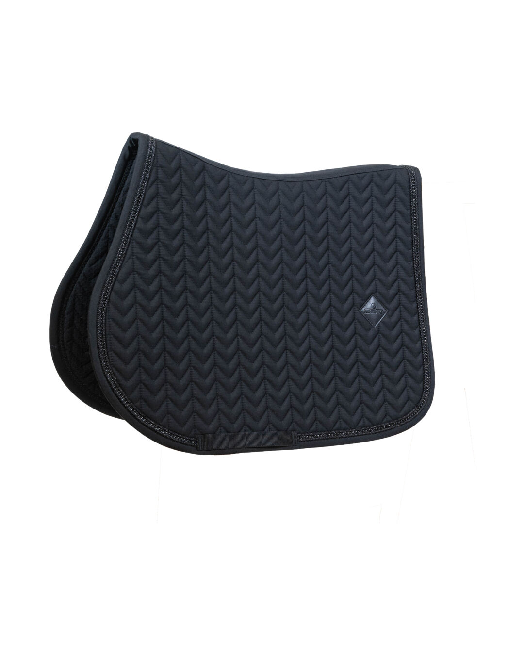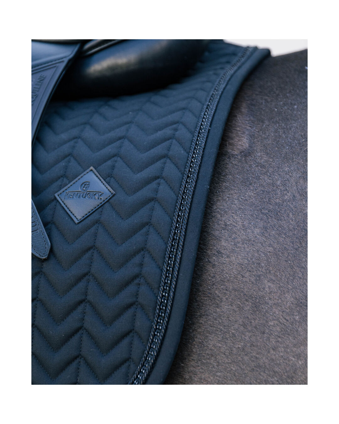 Ein besonderes Merkmal dieser Schabracke ist ihre hervorragende Polsterung. Sie bietet optimalen Schutz vor Verspannungen und minimiert Reibung zwischen Pferderücken und Sattel. Ideal für den täglichen Einsatz im Dressurtraining oder auf Turnieren, wo Komfort und ein ansprechendes Erscheinungsbild gefragt sind.