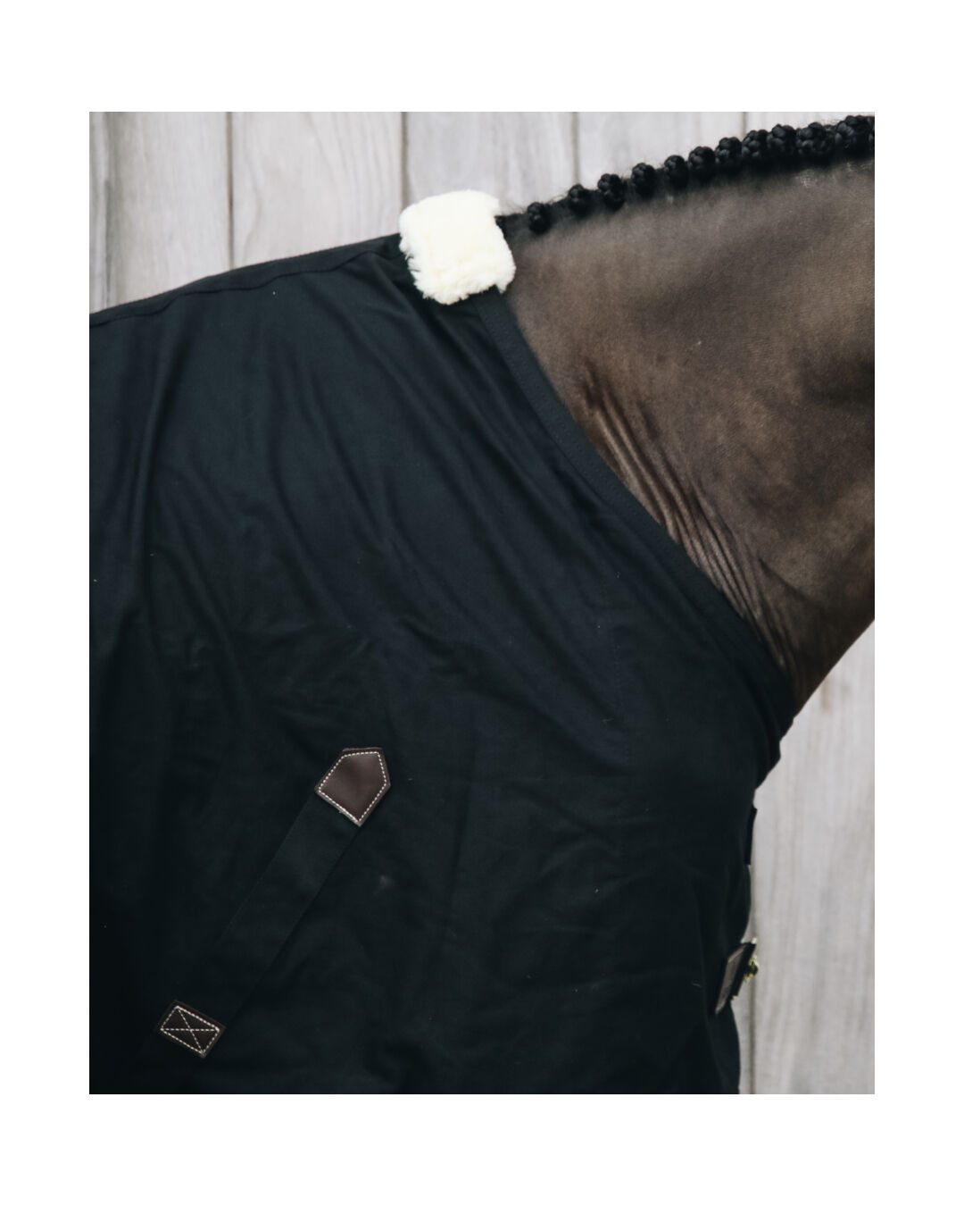 Diese hochwertige Decke besteht aus einer extra starken Polyester-/Baumwollmischung, die deinem Pferd sowohl im Stall als auch im Freien optimalen Komfort bietet. Das künstliche Schaffell am Widerrist verhindert unangenehmes Scheuern und Druckstellen, während der doppelte Verschluss vorne und die mit Kunstleder verstärkten Kreuzgurte für einen sicheren Sitz sorgen. Im Winter kann sie außerdem als Unterdecke dienen.