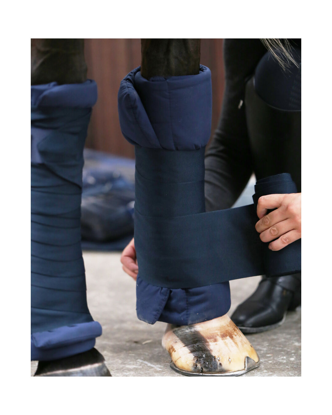 Mit einer Länge von 4 Metern und einer Breite von 14 cm bieten sie umfassenden Schutz für die Beine Deines Pferdes. Die robusten Klettverschlüsse sorgen für einen sicheren Sitz, egal ob im Stall oder beim Training. Geliefert im praktischen 4er-Set und verpackt in einer handlichen Tasche mit Reißverschluss, sind sie leicht zu transportieren und zu verstauen.