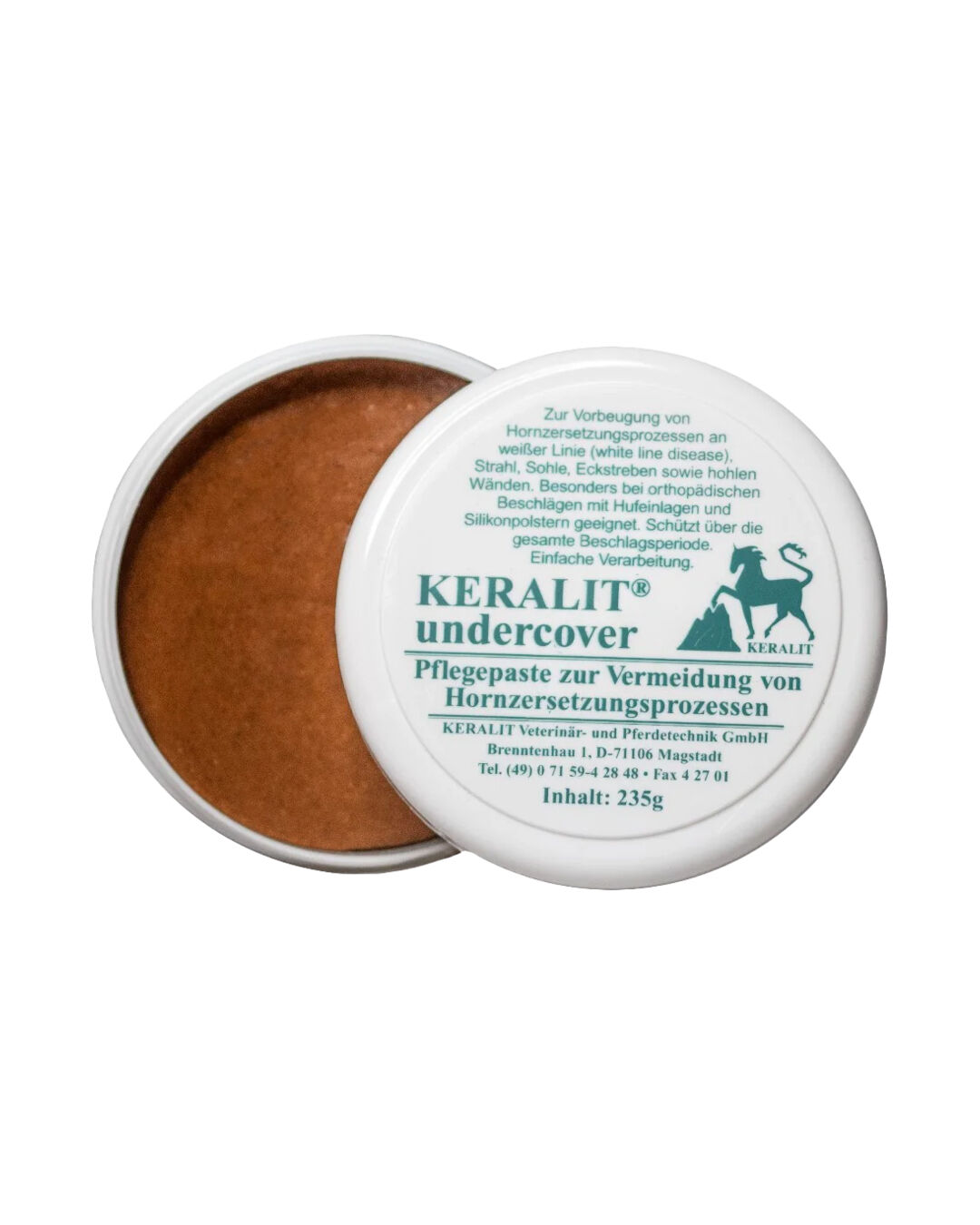 Die Hufpflegepaste Undercover von Keralit ist ein fortschrittliches Pflegeprodukt, speziell entwickelt, um den Huf unter Eisen, Platten und Silikon zu schützen.