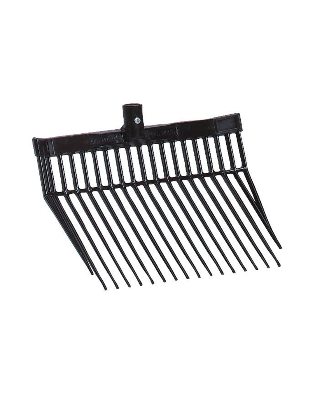 Gefertigt aus hochwertigem Kunststoff, hält sie auch starker Beanspruchung stand. Die breiten Zinken machen das Aufnehmen und Abwerfen von Einstreu oder Mist einfach und effizient. Mit einer Breite von 40 cm und einer Länge von 30 cm bietet sie eine gute Arbeitsfläche, ohne unhandlich zu sein.