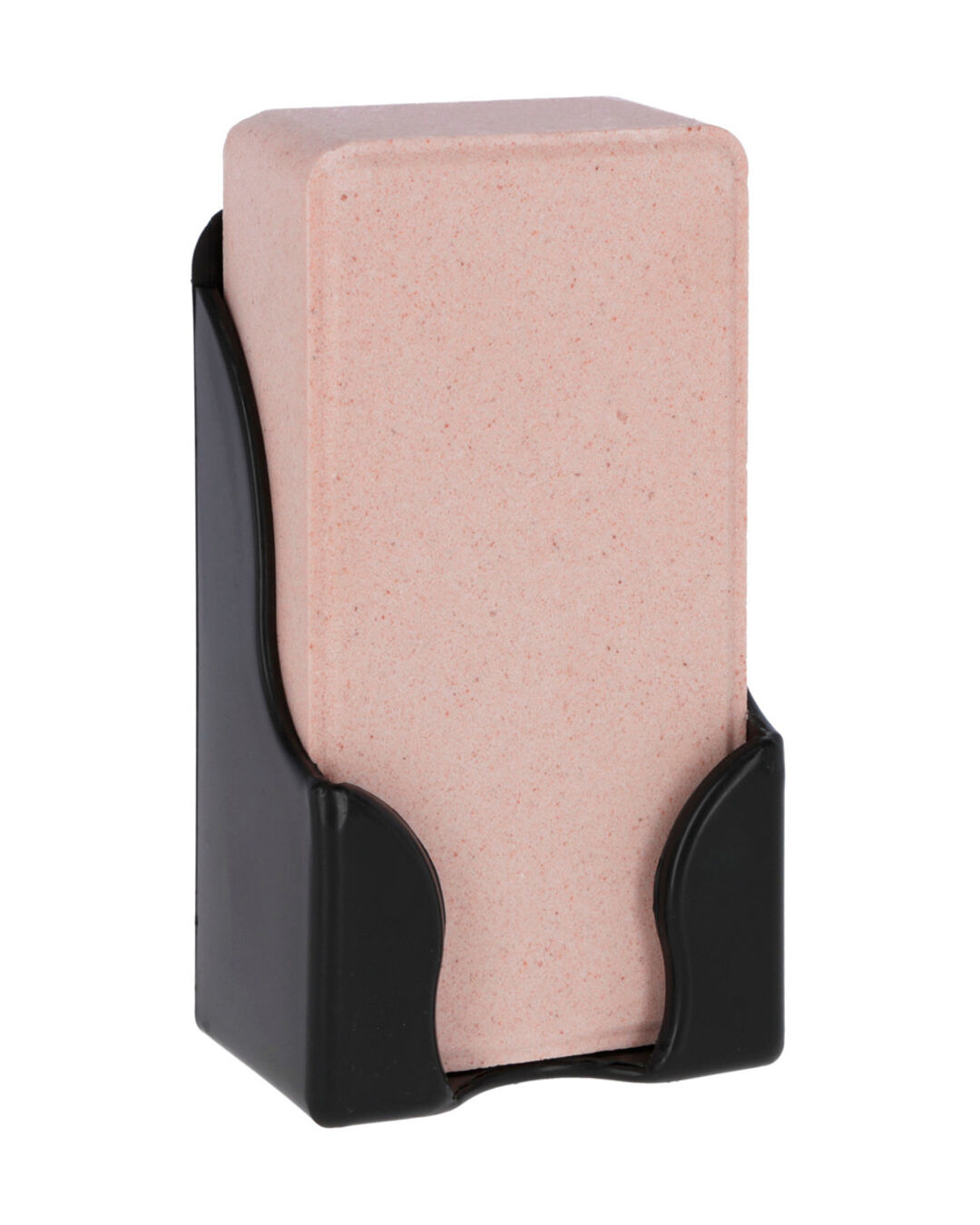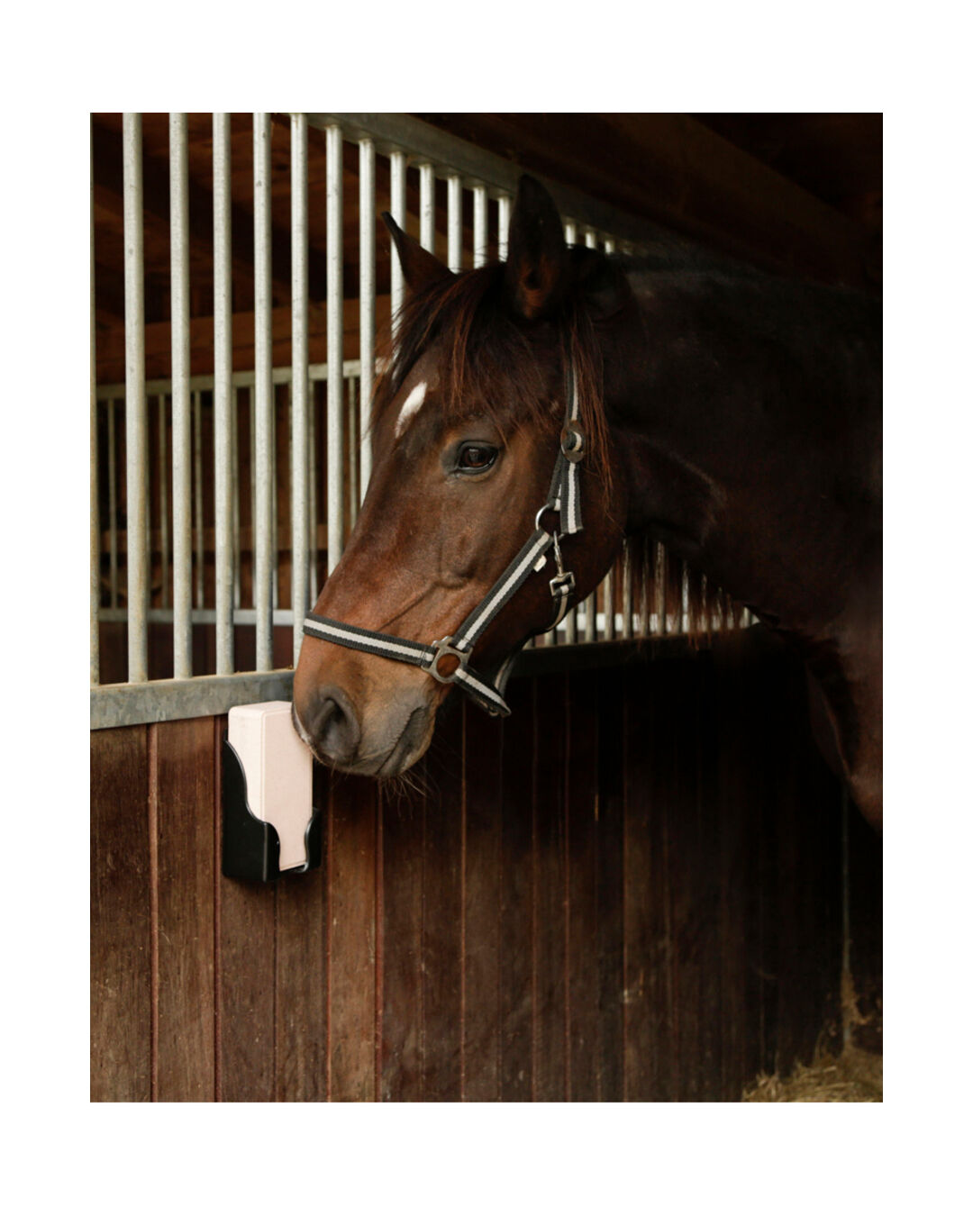 Die Form des Halters ist gut. Der Stallbetreiber findet es gut, dass die Salzrückstände nicht in die Wand ziehen. Abziehen tue ich den einen Stern, weil der Likit Himalajasalzleckstein nur sehr schwer in den Halter passt.