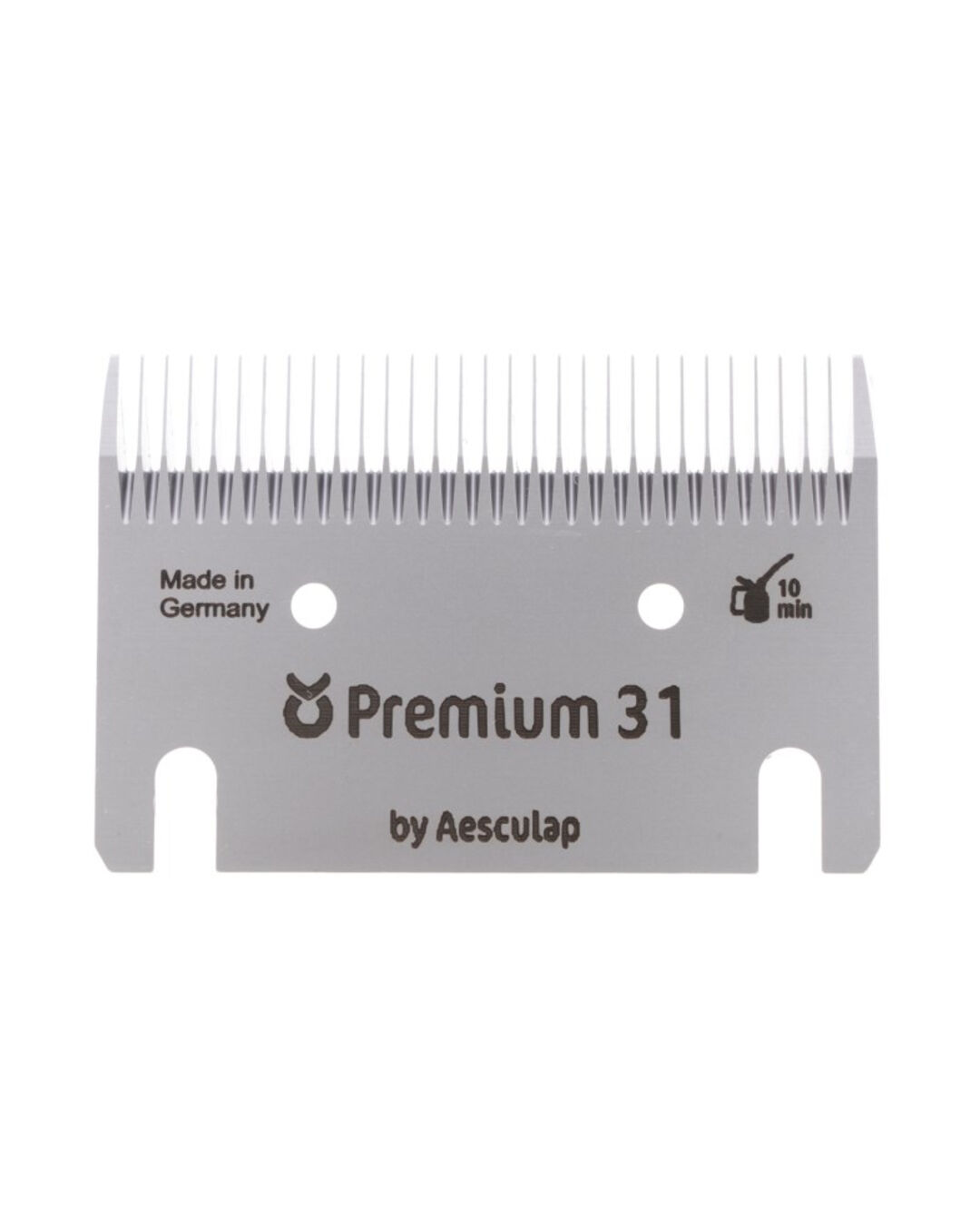 Mit einem Obermesser von 23 Zähnen und einem Untermesser von 31 Zähnen bietet es eine Resthaarlänge von 2 bis 4 mm, ideal für präzise Schurergebnisse. Zudem ist es „Made by Aesculap“, was für hohe Standards in der Fertigung steht.