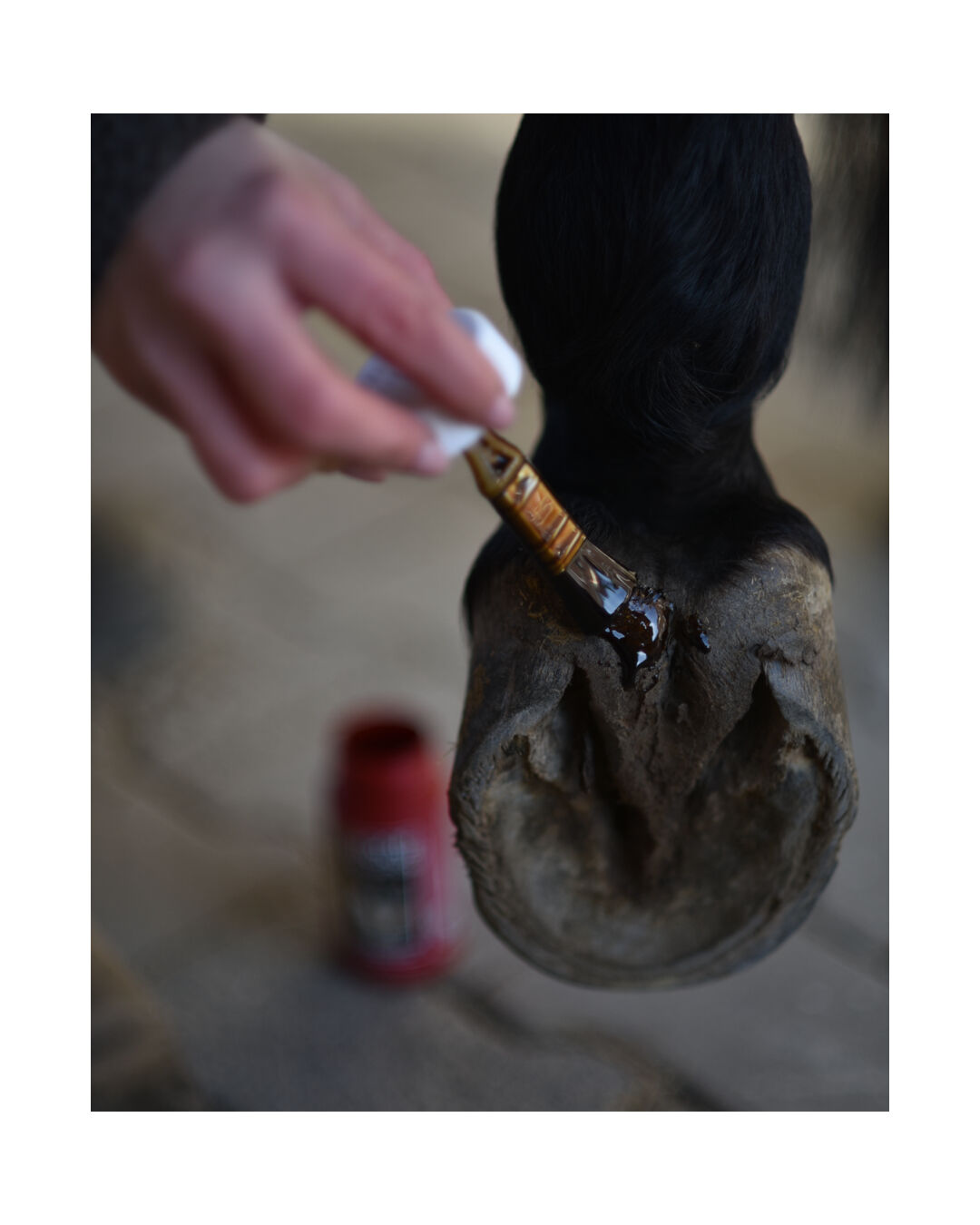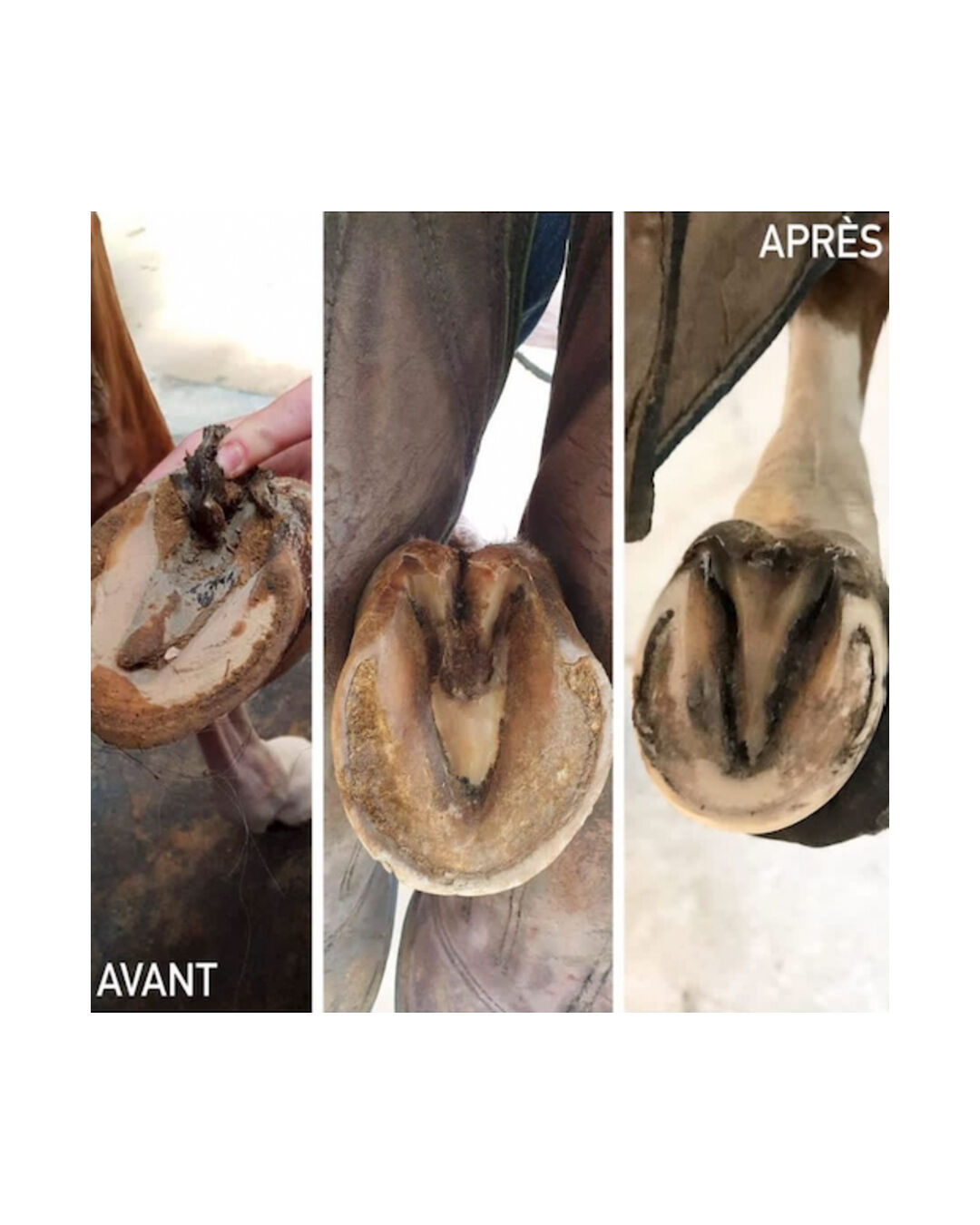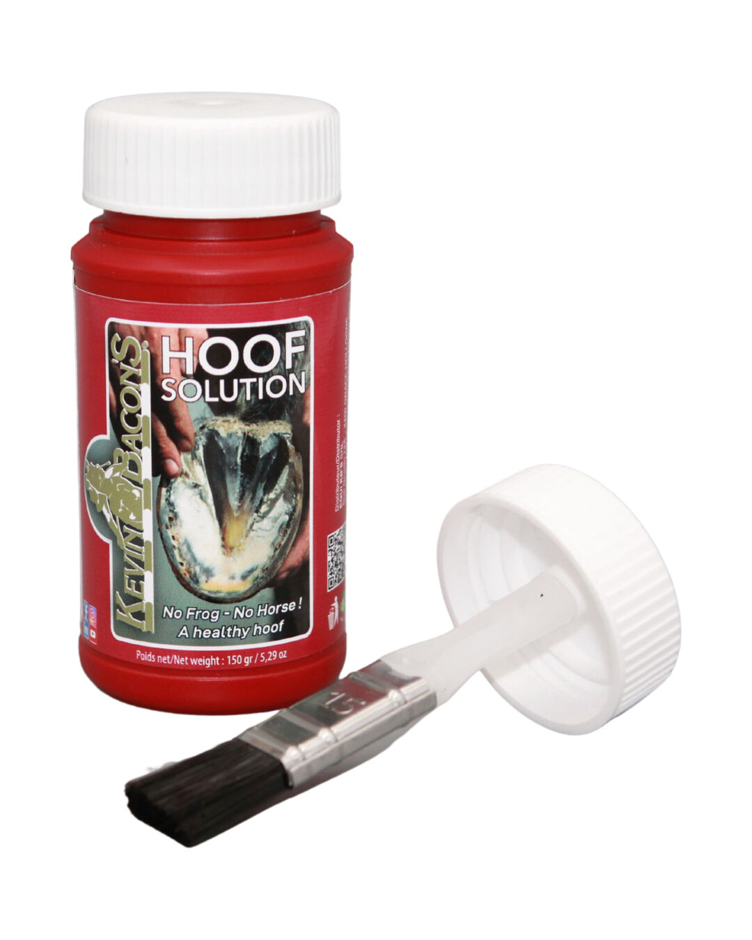 Dieses Produkt wird auf Sohle und Strahl aufgetragen, wenn diese zu weich, empfindlich, übelriechend und/oder zu schwach sind. Es haftet perfekt an Hufsohle und -strahl, vorausgesetzt, diese sind vorher sauber und trocken. Der integrierte Bürstenpinsel ermöglicht eine schnelle und einfache Anwendung. Das Hoof Solution ist ein relativ dickflüssiger Balsam, der der Konsistenz von Öl nahe kommt.