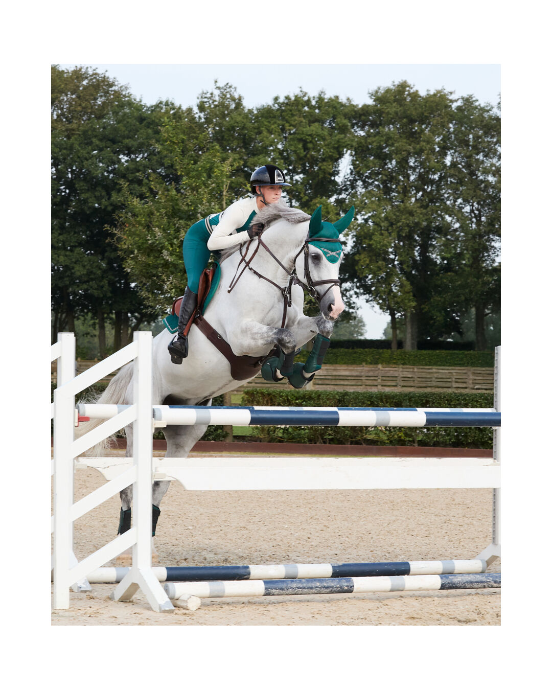 Ein besonderes Detail: Die Ohren bestehen aus geräuschreduzierendem Neopren. Das hilft deinem Pferd, sich besser zu konzentrieren, weil störende Geräusche gedämpft werden. Gerade sensible Pferde profitieren davon enorm. Das schnell trocknende Mesh-Gewebe sorgt dafür, dass Feuchtigkeit kaum eine Chance hat, und der 4-Wege-Stretch macht jede Bewegung mühelos mit.