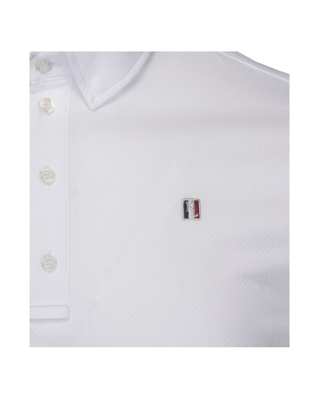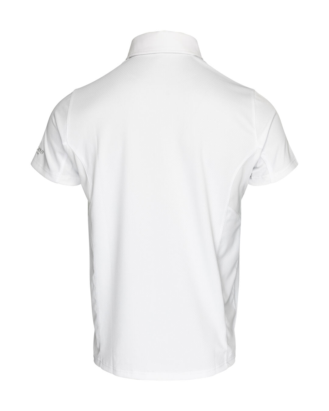 Der Pique-Stoff zeichnet sich durch seine Atmungsaktivität sowie schnelltrocknende und feuchtigkeitsabweisende Eigenschaften aus. In klassischem Weiß gehalten, ist dieses Turniershirt eine stilvolle Wahl für den Wettkampf.
