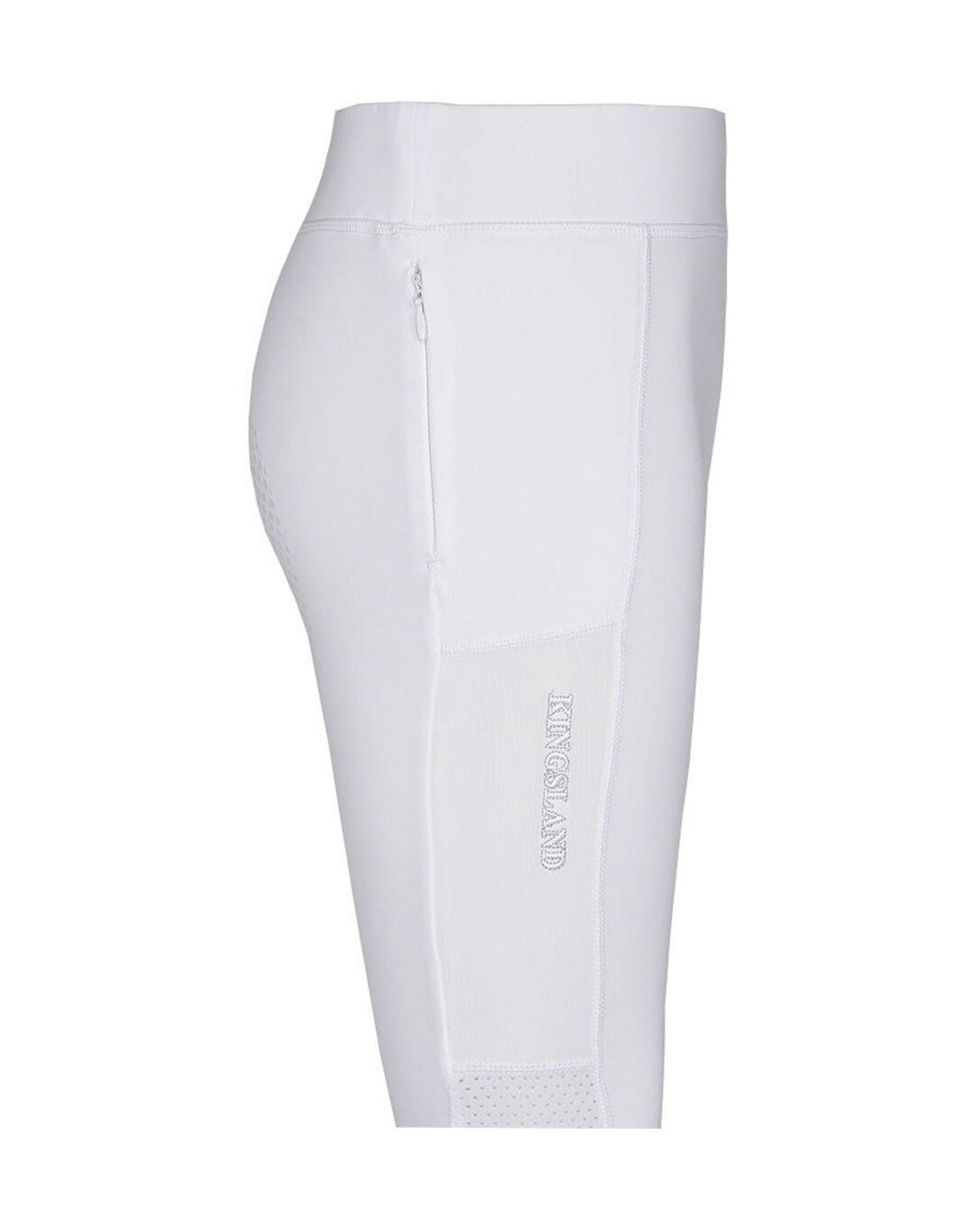 Das hochelastische Material ermöglicht eine perfekte Passform und Bewegungsfreiheit, während der figurformende Effekt für eine schmeichelhafte Silhouette sorgt. Die Reitleggings ist aus atmungsaktivem, schnell trocknendem Nylon-Elastan-Gemisch gefertigt, was sie ideal für den Einsatz bei jeder Witterung macht. Praktische Details wie die Tasche mit Reißverschluss und das Mesh-Gewebe hinter den Knien und an den Knöcheln erhöhen den Tragekomfort und die Funktionalität dieser Reitleggings.