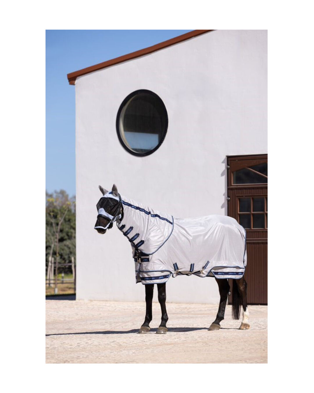 LeMieux Fliegendecke Armour-Tek - Der ideale Schutz bei warmem Wetter! Endlich ist er da - der Sommer! Doch damit kommen auch die lästigen Fliegen und Mücken. Doch mit der LeMieux Fliegendecke Armour-Tek brauchst du dir keine Sorgen mehr zu machen. Sie ist superleicht und bietet dennoch einen optimalen Schutz bei warmem Wetter. Das innovative Mikro-Netzgewebe sorgt für eine hochatmungsaktive Barriere, die deinem Pferd den nötigen Schutz vor Insekten bietet. Der Bauchlatz maximiert die Abdeckung und verfügt über einen Drei-Gurt-Verschluss mit abnehmbarem Mittelgurt. Das spezielle vordere Verschlusssystem verteilt den Druck, um Reibung an der Schulterspitze und auf der Brust zu vermeiden. Die LeMieux Fliegendecke Armour-Tekbietet einen UV-Schutz von 85% und ist somit der perfekte Begleiter für sonnige Tage.