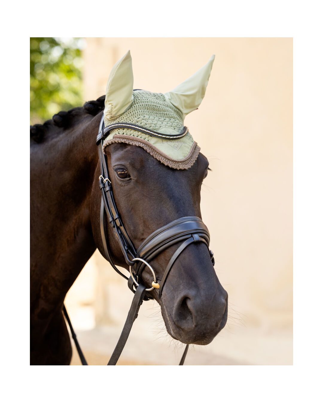 Diese handgefertigte Fliegenhaube ist nicht nur ein elegantes Accessoire für jedes Reitoutfit, sondern bietet auch effektiven Schutz für dein Pferd. Mit ihrer sorgfältigen Häkelarbeit und den geflochtenen Details ist sie ein wahrer Hingucker.