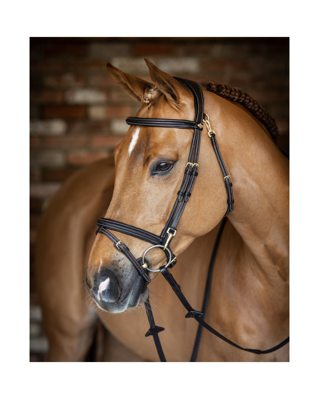 Dank der Clipverschlüsse an den Backenstücken lässt sich das Gebiss im Handumdrehen tauschen – ideal, wenn du verschiedene Gebisse nutzt. Auch der Kehlriemen ist durch D-Ringe am Genickstück komplett abnehmbar.
