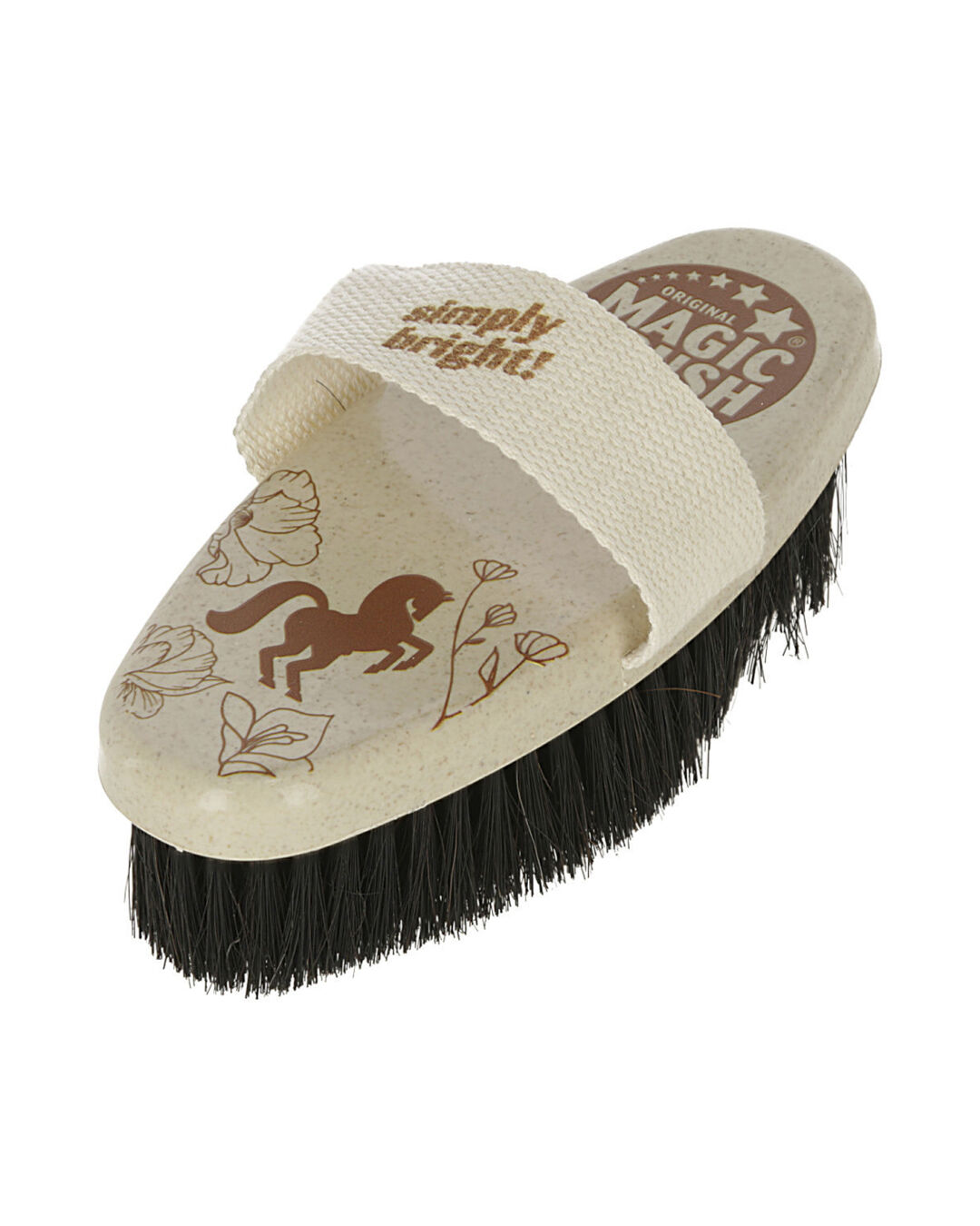 Magic Brush Fellglanzbürste Water Lilly produziert aus Kunststoff mit bis zu 60% Recycling-Anteil und zusätzlicher Einsatz von Reis- und Strohfasern bis zu 55%.