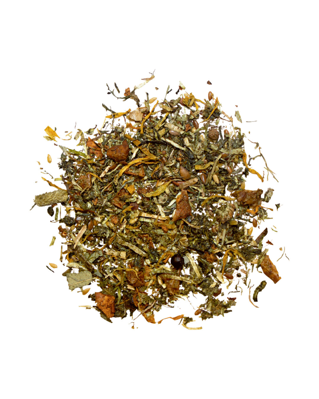 - Kräuter: Brennnessel, Eukalypt., Koriand., Fenchels., Eibischbl., Thym., Kamille, Bockshornkl., Birkenbl., Anis, Fichtenn., Spitzweg., Kümmel, Salbei, Wacholderb., Knobl.)2 %
