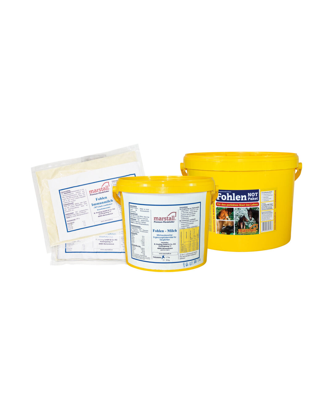 Das Fohlen-NOT-Paket von marstall ist eine durchdachte Erstversorgung für Fohlen in den kritischen ersten fünf bis sechs Lebenstagen – eine Zeit, in der eine zuverlässige Versorgung mit Antikörpern und Nährstoffen überlebenswichtig sein kann. Gerade wenn das Neugeborene keine oder zu wenig Biestmilch von der Mutterstute aufnehmen kann, bietet dieses Paket eine wichtige Hilfe in Kombination mit tierärztlichen Maßnahmen.