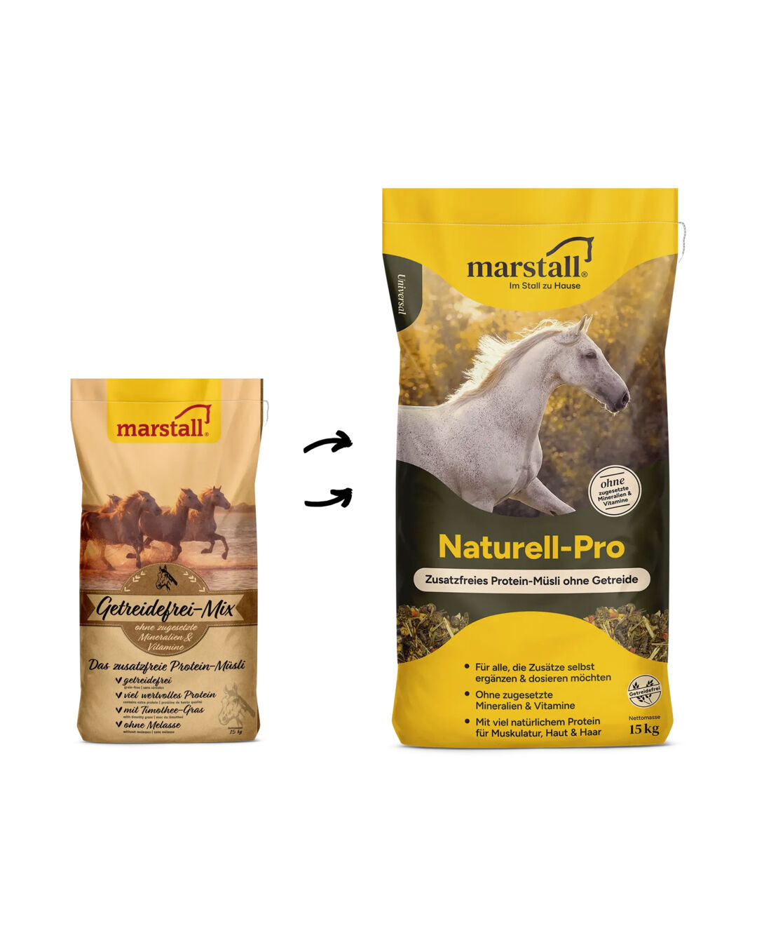 Das neue Müsli Naturell-Pro von marstall ist dein natürlicher Eiweißlieferant, wenn du die Ration deines Pferdes selbst zusammenstellen und Zusätze individuell dosieren möchtest.