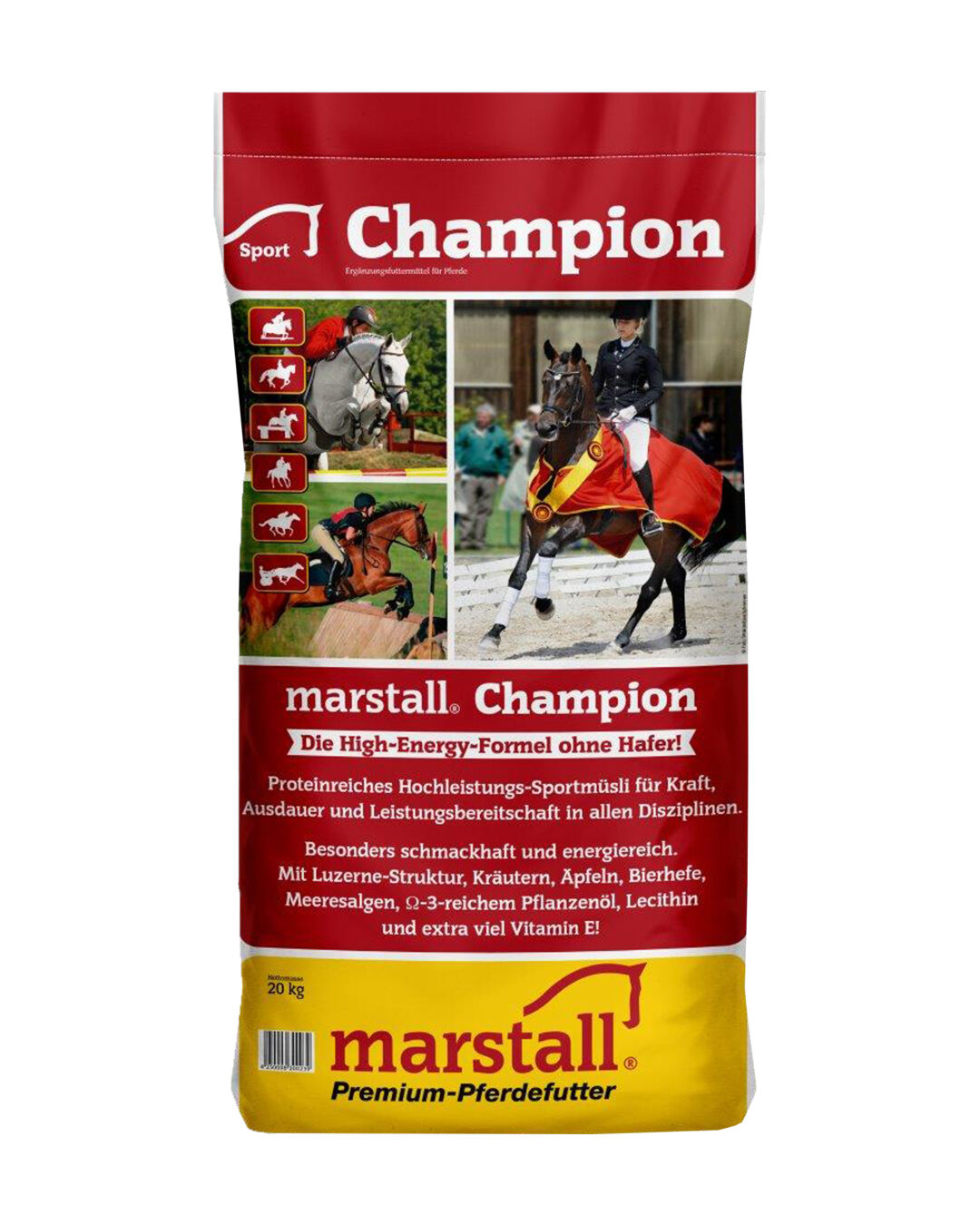 Wenn du ein energiegeladenes Pferd im Sport brauchst, ist das Sportmüsli Champion von marstall die ideale Wahl.