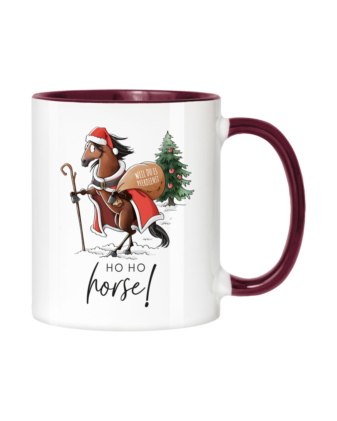 Die Weihnachtstasse von mrs. RIDE bringt Humor und Freude in die Weihnachtszeit – das ideale Geschenk für deine Stallfreunde, die Reitbeteiligung oder einfach für dich selbst.