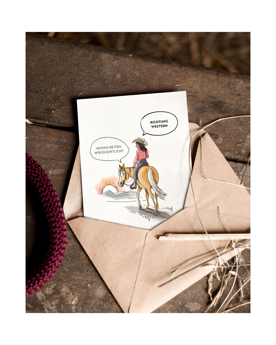 Die Strohpapier-Postkarte von mrs. RIDE ist die perfekte Wahl, um Pferdefans ein Lächeln ins Gesicht zu zaubern, sei es als Geburtstagskarte oder kleines Mitbringsel.
