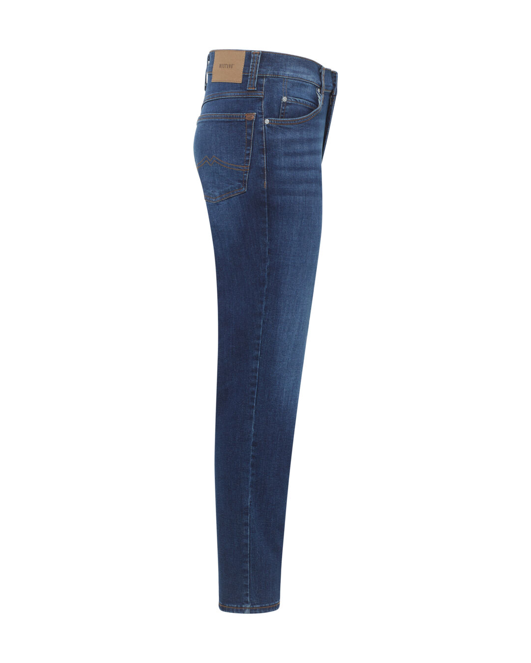 Die gerade Passform sorgt für einen zeitlosen Stil, während die Used-Waschung, dezente Bewegungsfalten und markante Kontrastnähte den authentischen Mustang-Charakter hervorheben. Mit ihrem 5-Pocket-Design bietet die Hose nicht nur praktische Funktionalität, sondern auch den typischen Denim-Look, der zu zahlreichen Outfits passt.