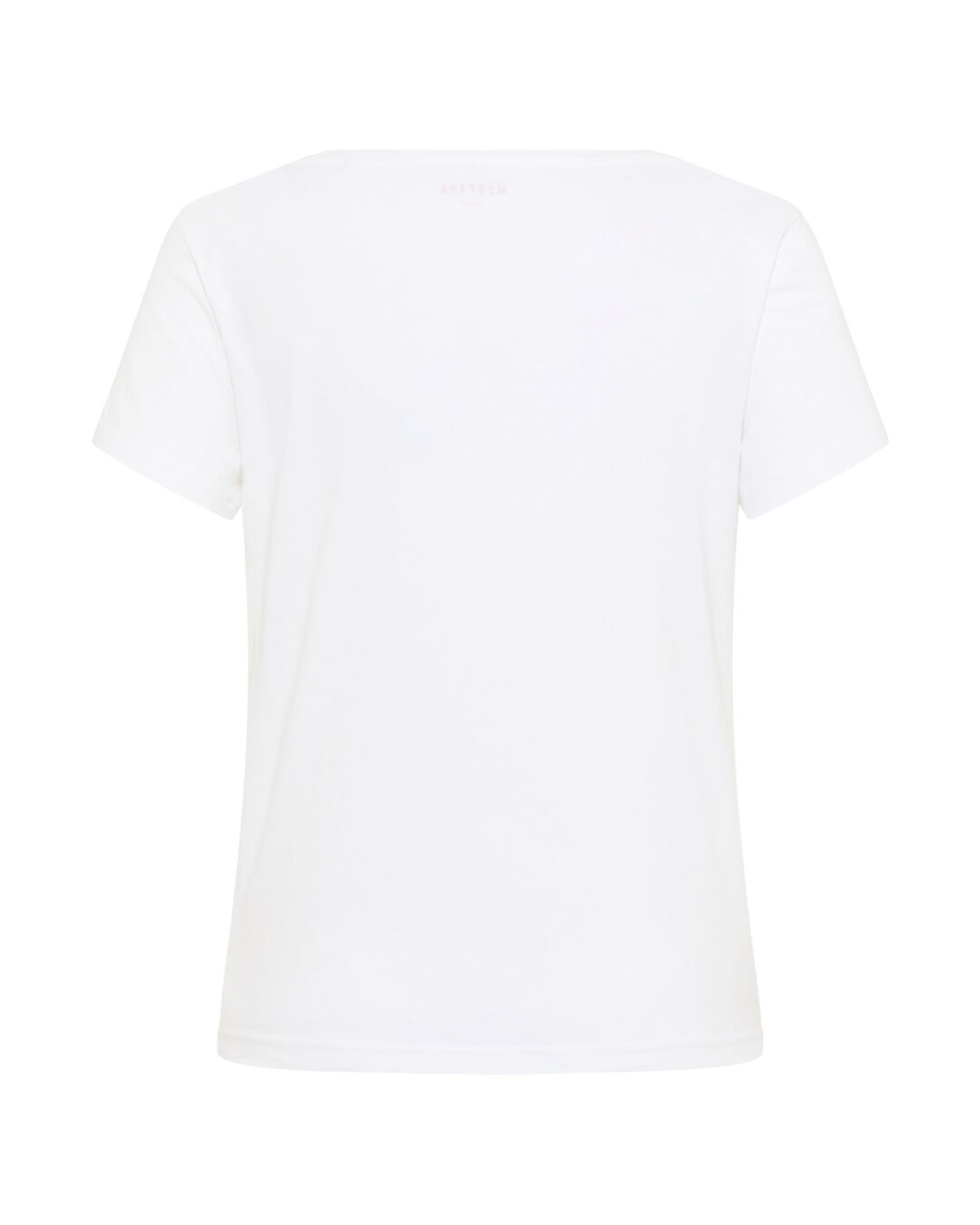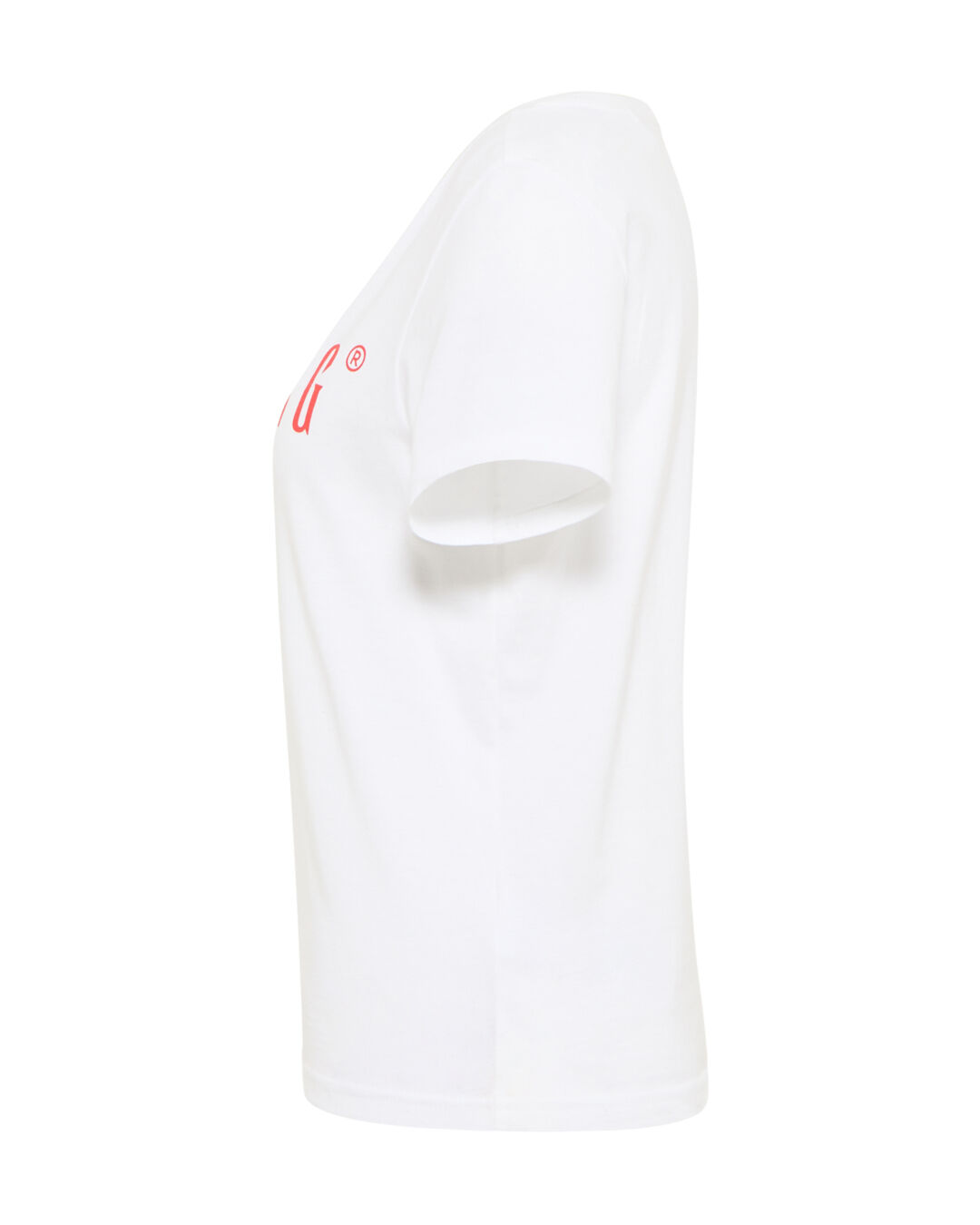 Wenn du Lust auf ein Shirt hast, das easy kombinierbar ist und trotzdem nicht langweilig wirkt, ist das T-Shirt Style Alma von MUSTANG deine Wahl. Der auffällige Label-Print bringt Charakter rein – ohne dass du dafür extra viel Stylingaufwand betreiben musst.