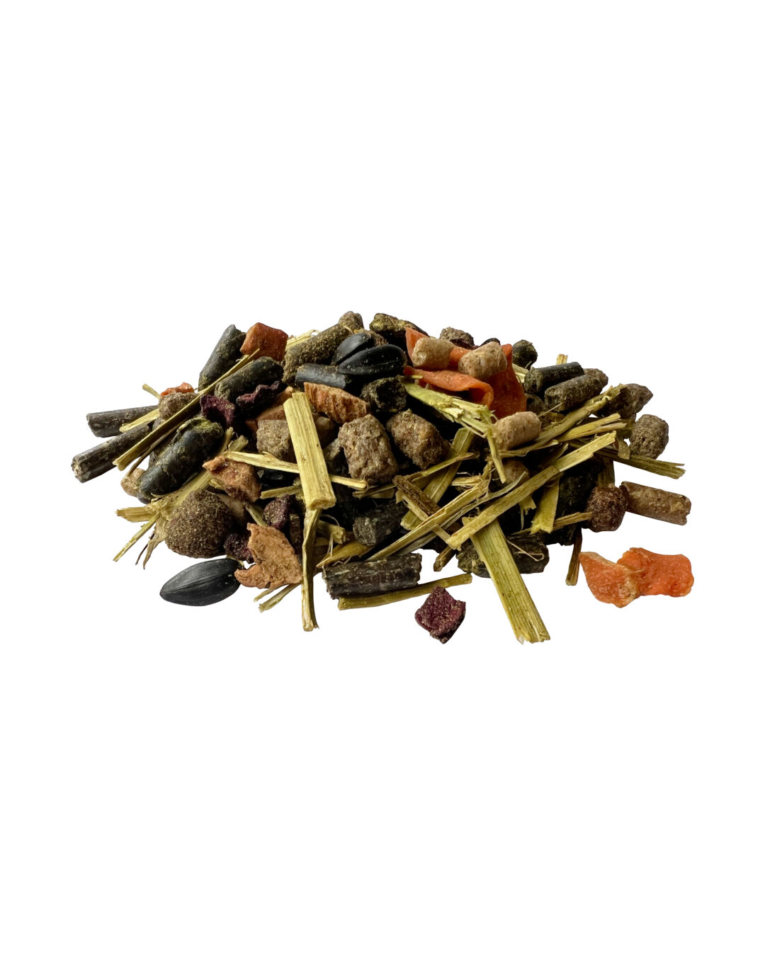 | Fütterungsmenge: | Füttere täglich 250 g pro 100 kg Körpergewicht, verteilt auf 2-3 Portionen. Für ein 600 kg schweres Pferd entspricht das 1,5 kg täglich. |