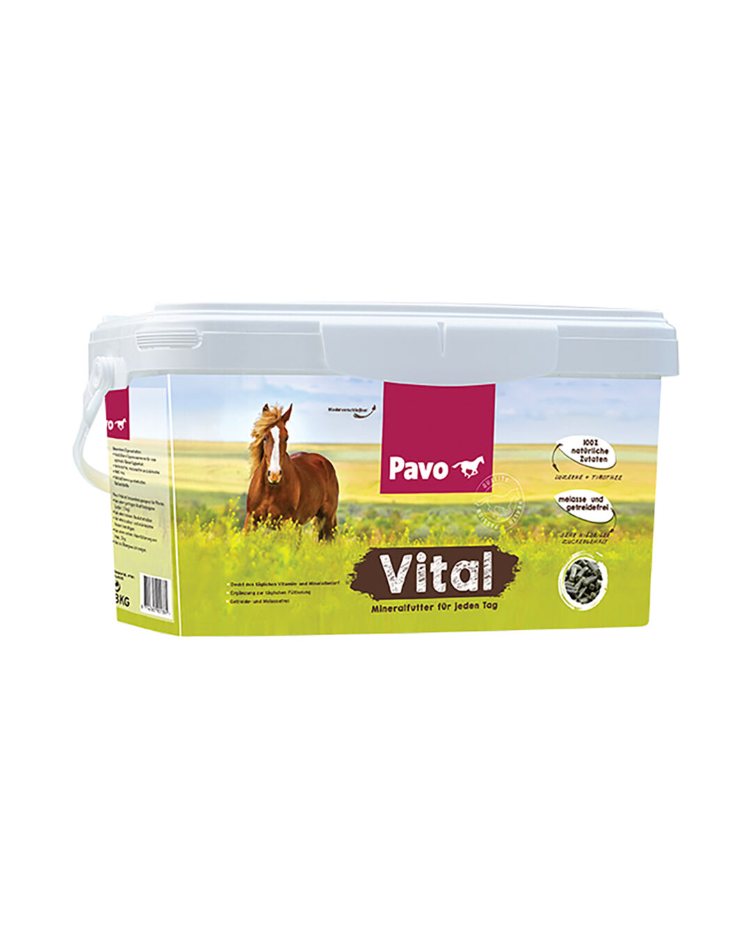 | Fütterungshinweis: | Pavo Vital ist ein vollwertiges Mineralfutter, das für alle Pferde und Ponys geeignet ist. Bitte beachte, dass die Tagesmenge nicht überschritten werden sollte. |
