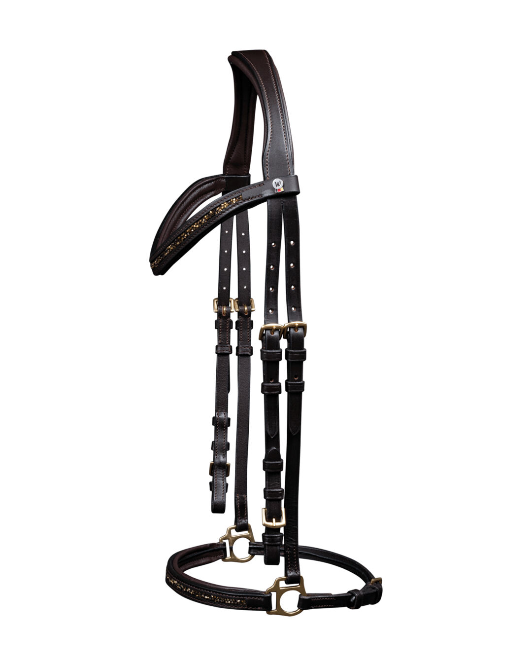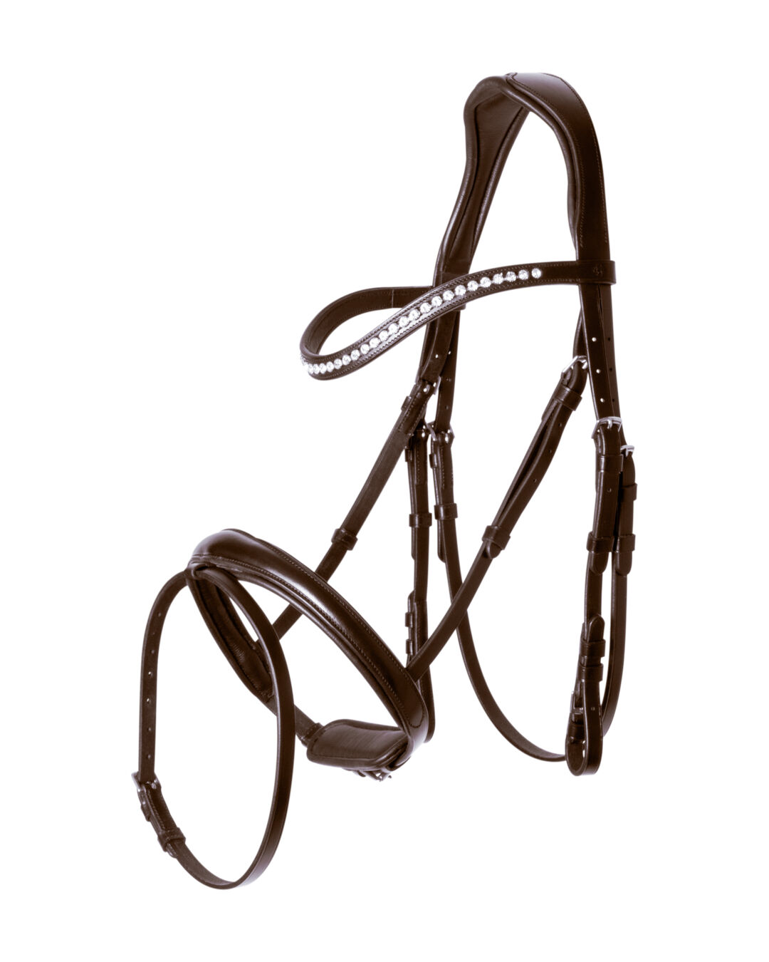 Mit Glitzer, kunstvoller Verzierung, als Kettchen oder klassisch Schwarz: Stirnriemen faszinieren mit edlem Design, sorgen mit einer geschwungenen Linie für extra Eleganz oder peppen mit farbigen Elementen das Outfit des Pferdes auf. Für jeden Reitergeschmack ist bei der großen Auswahl an Stirnriemen garantiert etwas dabei. Bei der Passform gelten jedoch keine Kompromisse: Das Stirnband sorgt nämlich dafür, dass das wichtige Genickstück an der richtigen Stelle sitzt: Ist das Stirnband zu kurz, wird das Genickstück nach vorne gezogen und drückt auf den empfindlichen Ohrenbereich. Ist es zu lang, rutscht das Genickstück nach hinten, das Reithalfter bleibt nicht mehr an seinem Platz. Deswegen sind die hübschen Stirnriemen weit mehr, als nur ein optisches Highlight und sollten in ihrer Länge zur Anatomie des Pferdes passen.
