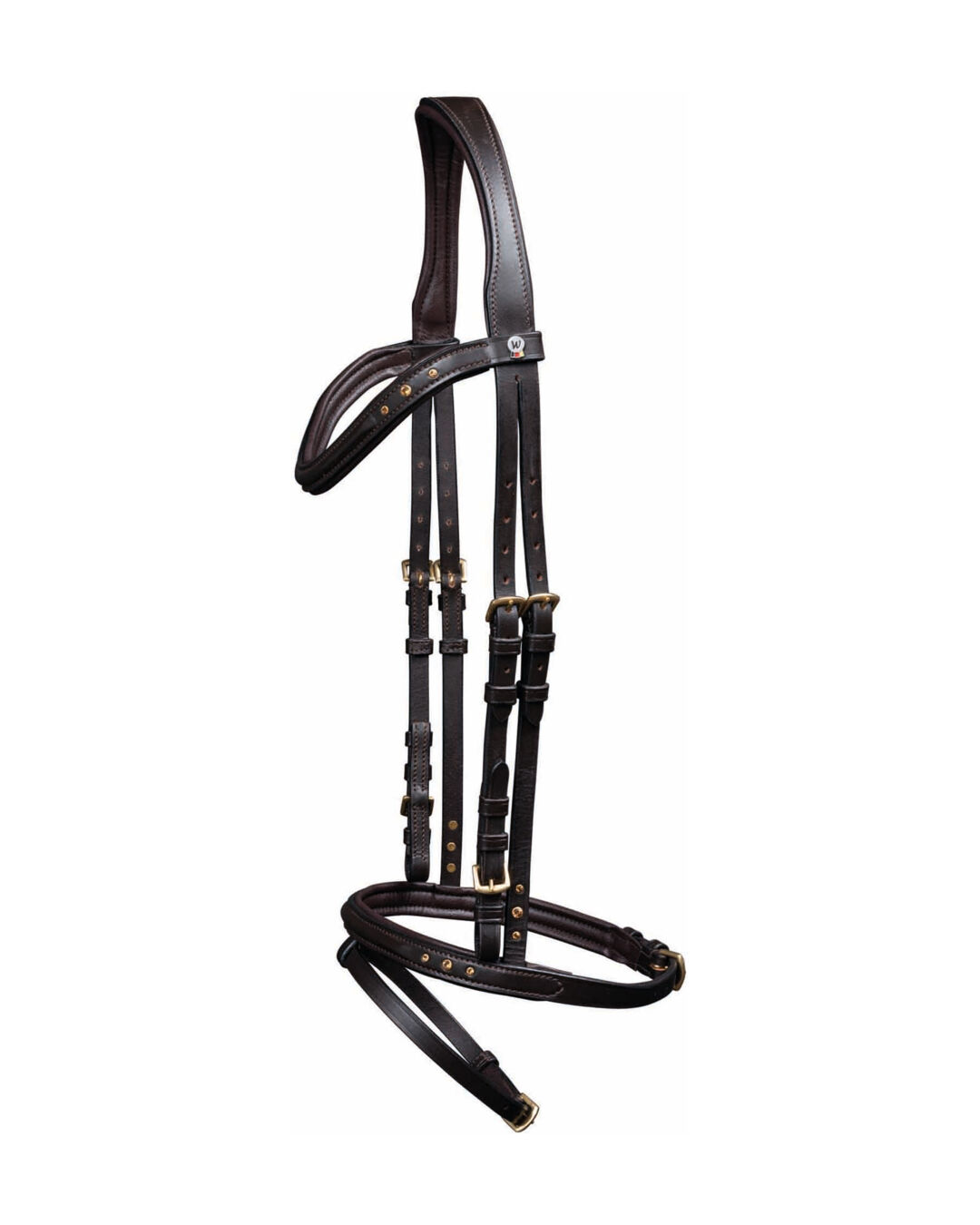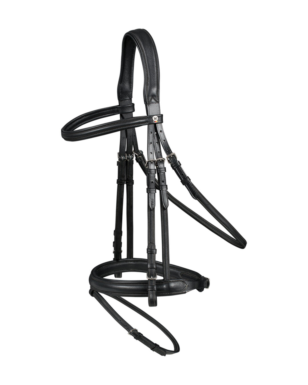 Die englische Trense ist der Klassiker unter den Trensen und ein Alleskönner. Es besteht aus einem Backen-Genick-Stück und einem Nasenriemen. Verschnallt wird der Nasenriemen mit zwei fingerbreit Abstand zum Jochbein. Zwischen Nasenriemen und Nasenrücken sollten bei korrekter Verschnallung zwei Finger Platz finden. Studien zufolge soll das Englische Reithalfter weniger Druck auf den Nasenrücken ausüben, als das kombinierte oder hannoversche Reithalfter. Außerdem ermöglicht es eine uneingeschränkte Kauaktivität.