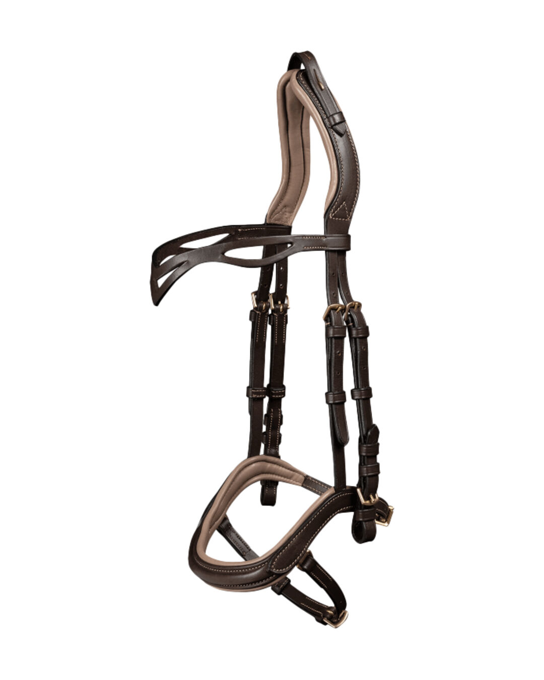 Dieses „Nasenkreuz“ wird von Herstellern häufig mit weicher Polsterung unterlegt, um Druckstellen zu vermeiden. Damit es richtig sitzt, sollten sich die Ringe beim mexikanischen Reithalfter nicht auf der Jochbeinleiste befinden, das runde Verbindungsstück der gekreuzten Riemen sollte möglichst weit oben auf dem Nasenrücken sitzen.