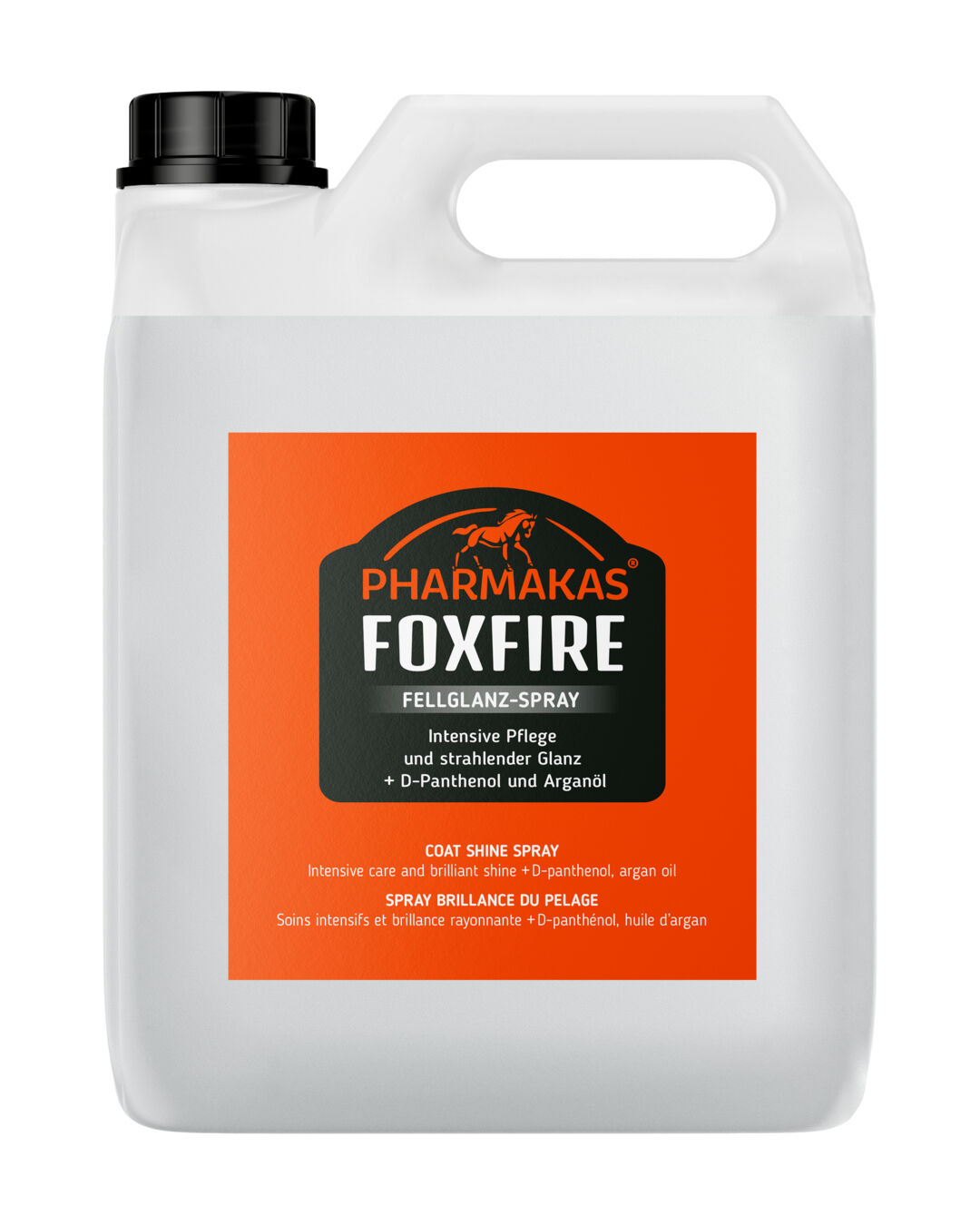 Das Pharmakas Foxfire Fellglanz-Spray veredelt das Erscheinungsbild deines Pferdes mit einer Kombination aus hochwertigen Inhaltsstoffen und pflegenden Eigenschaften.