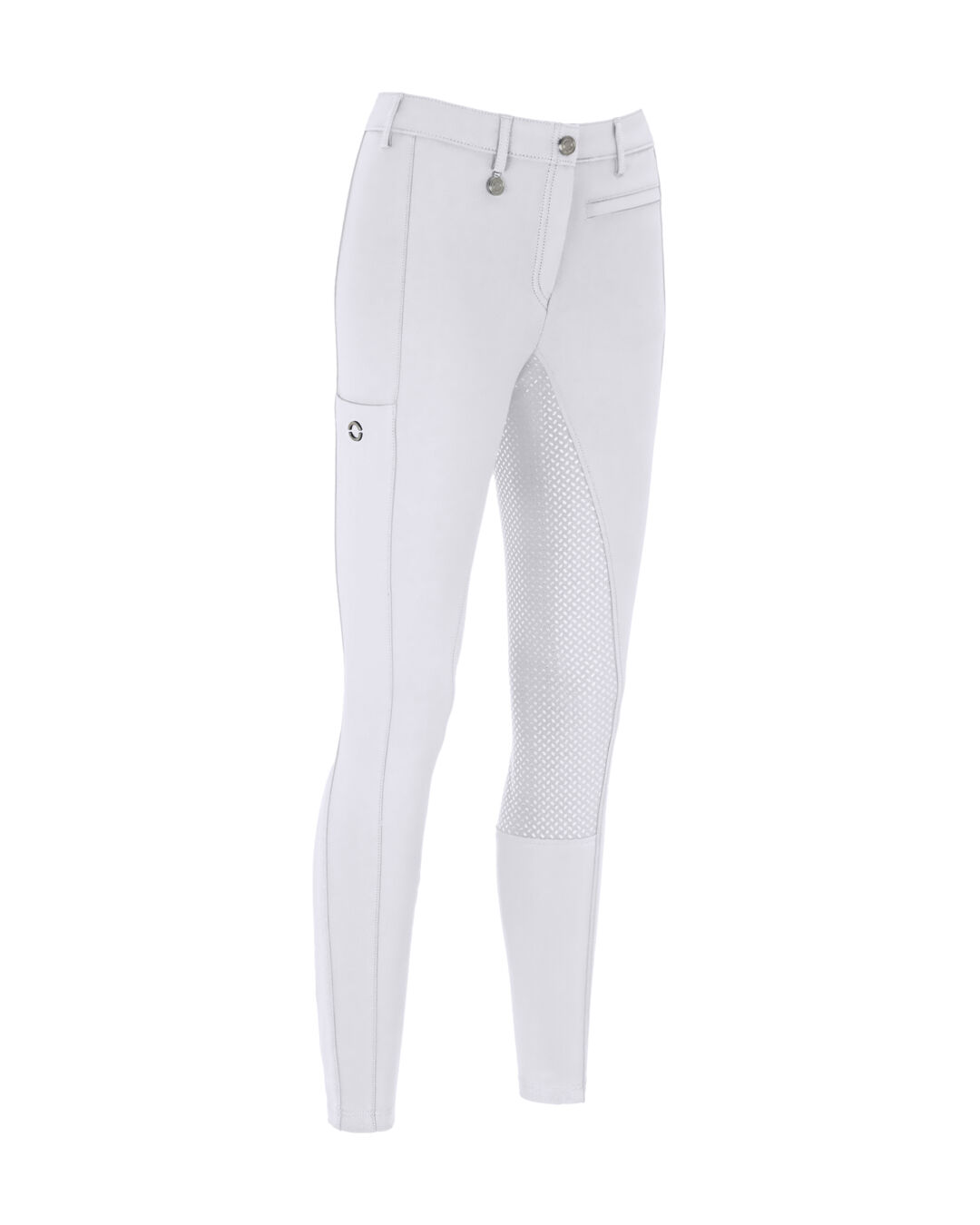 Praktische Details wie die seitliche Handytasche und die RV-Paspeltasche bieten dir ausreichend Stauraum für kleine Utensilien. Der Beinabschluss mit Rollierband sorgt für einen bequemen Sitz und verhindert ein Hochrutschen der Hose. Zusätzlich verleiht der Pikeur-Transfer an der Handytasche der Reithose einen stilvollen Akzent.