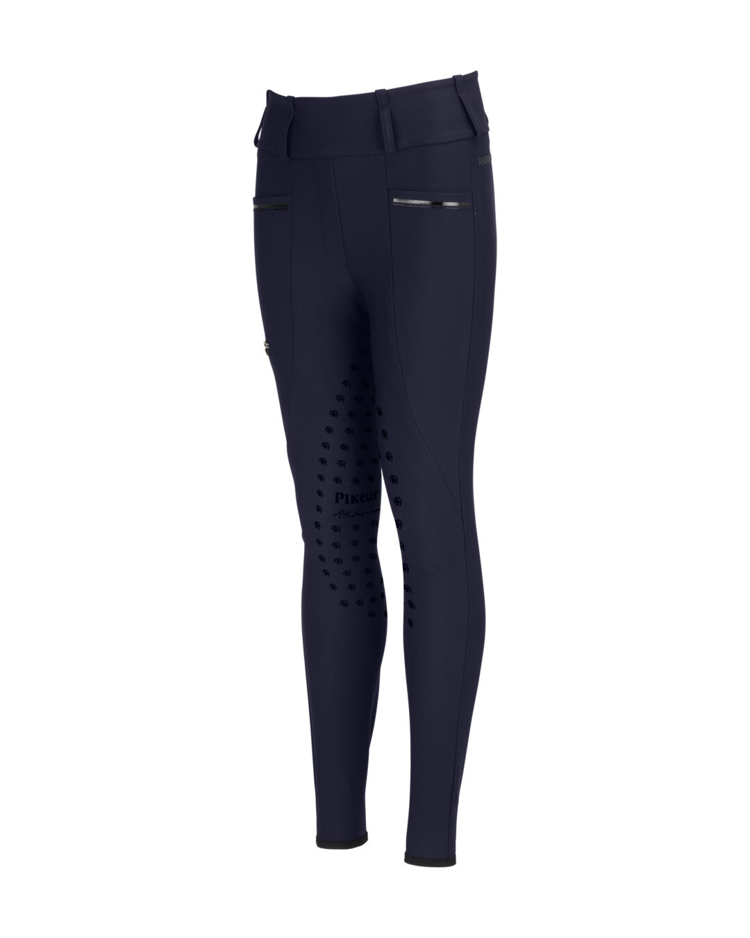 Die atmungsaktive Tech-Jersey Funktionsware bietet UV-Schutz und sorgt für ein angenehmes Tragegefühl, während der Siebdruck-Besatz im Pikeur Athleisure Design sicheren Halt im Sattel gewährleistet.