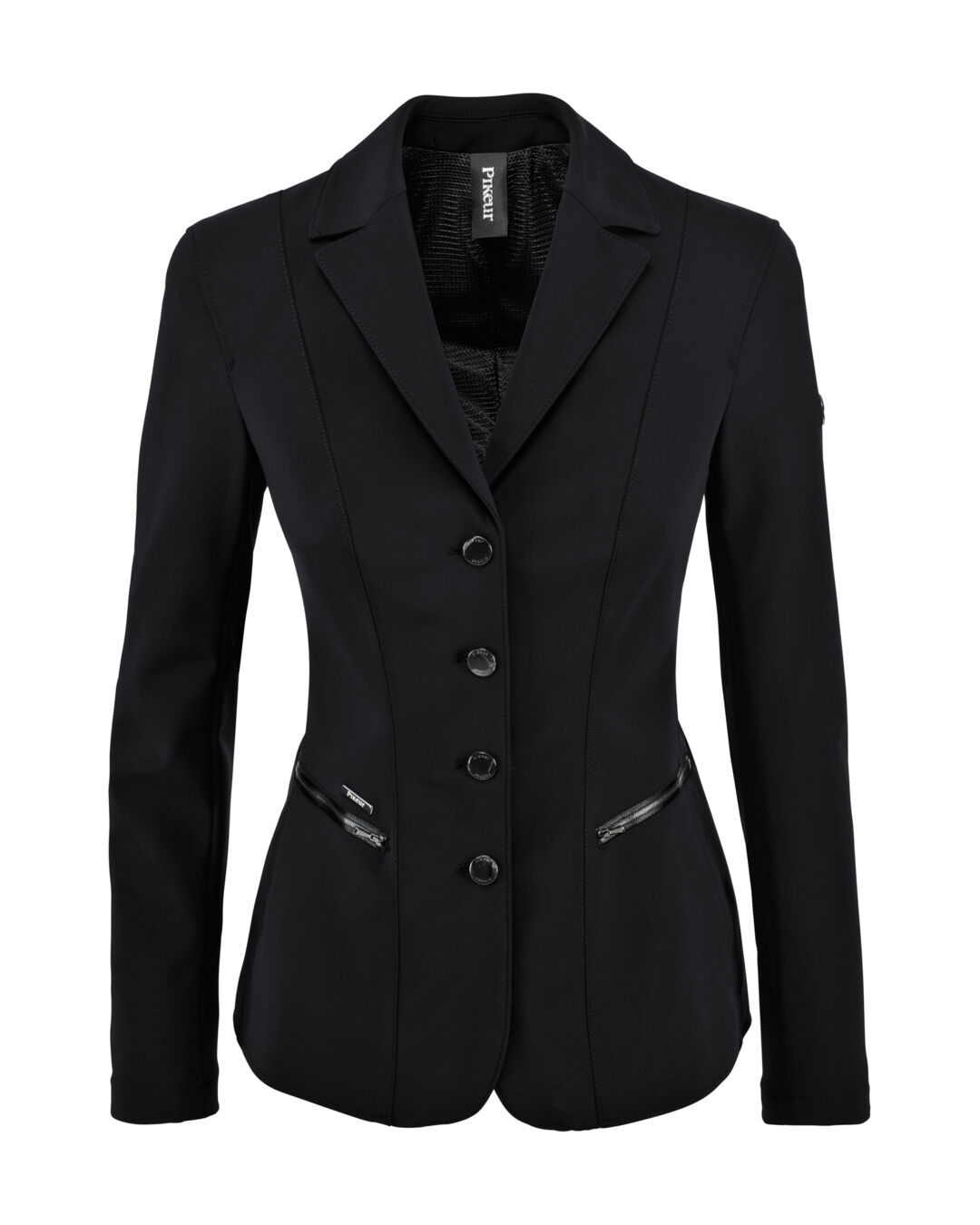 Das besonders angenehme Softshell-Turniersakko Paulin von Pikeur überzeugt durch den optimalen Tragekomfort und den stylischen Look. Es ist in körpernaher Schnittführung gehalten und in angenehmer Kurzform. Das atmungsaktive, bi-elastische Material und das Stretchfutter in den Ärmeln verleihen eine optimale Bewegungsfreiheit. Mit verdecktem Reißverschluss an der vorderen Kante sowie zwei Reißverschluss-Außentaschen. Edle Studs-Ornamente am Kragen und unter den Reitschlitzen runden den edlen Look ab.
