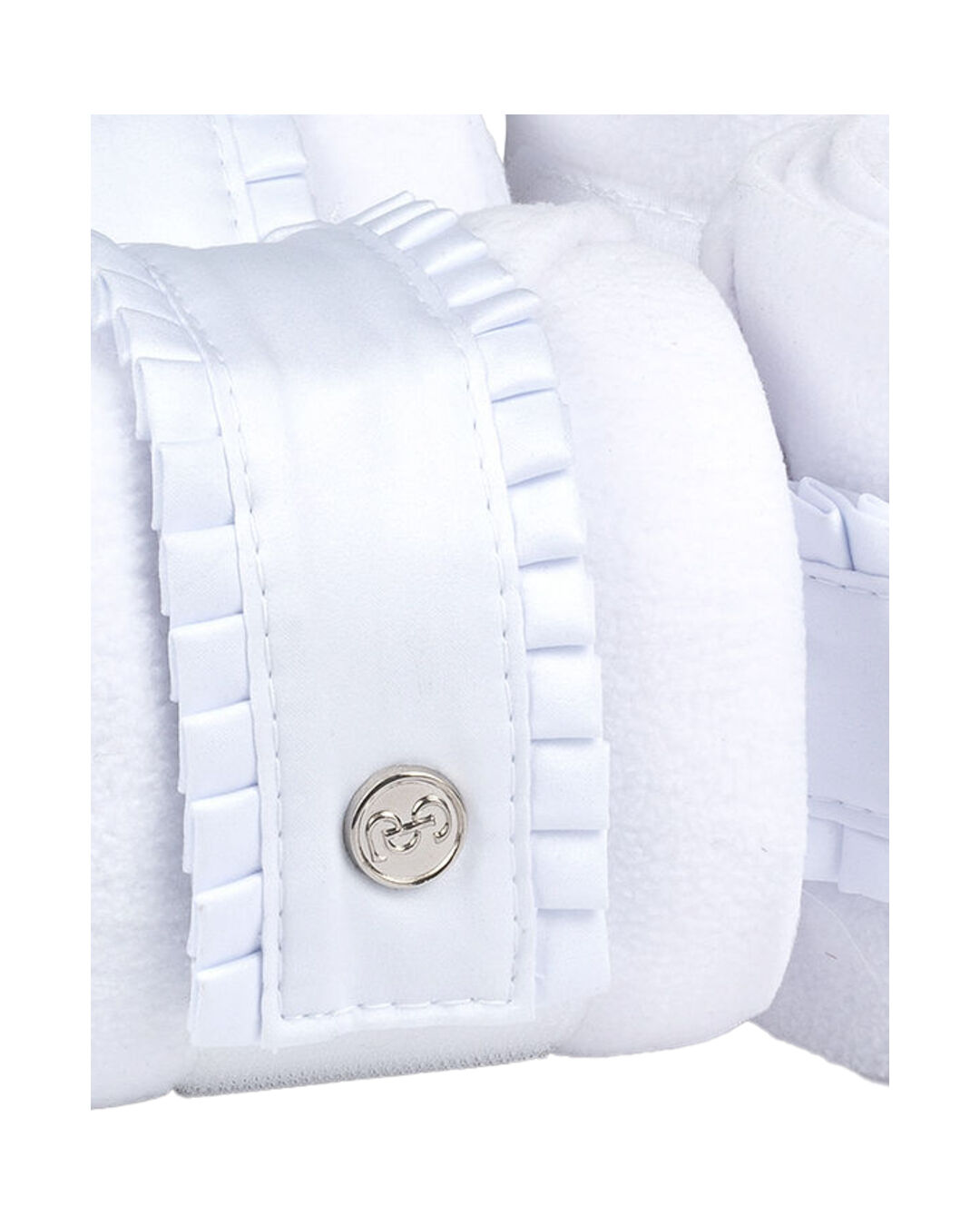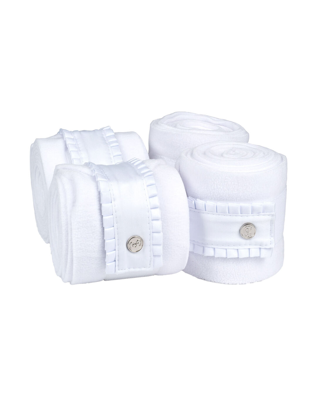 Gefertigt aus hochwertigem Anti-Pilling-Fleece, bieten sie zuverlässigen Schutz und Unterstützung für die Beine deines Pferdes. Die dekorativen Klettverschlüsse sind mit einer feinen Rüschenkante versehen und sorgen für ein stilvolles Finish. Mit einer Länge von 3,5 m lassen sich die Bandagen bei Bedarf individuell kürzen – ganz nach deinen Bedürfnissen. Geliefert im praktischen 4er-Set, passend zur gleichnamigen Kollektion.