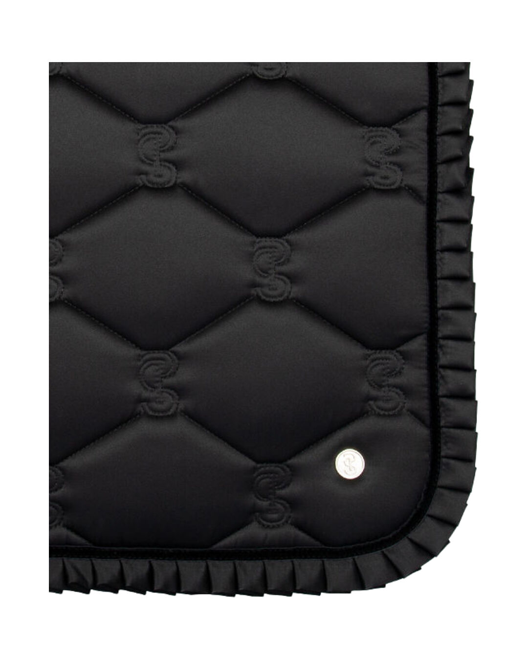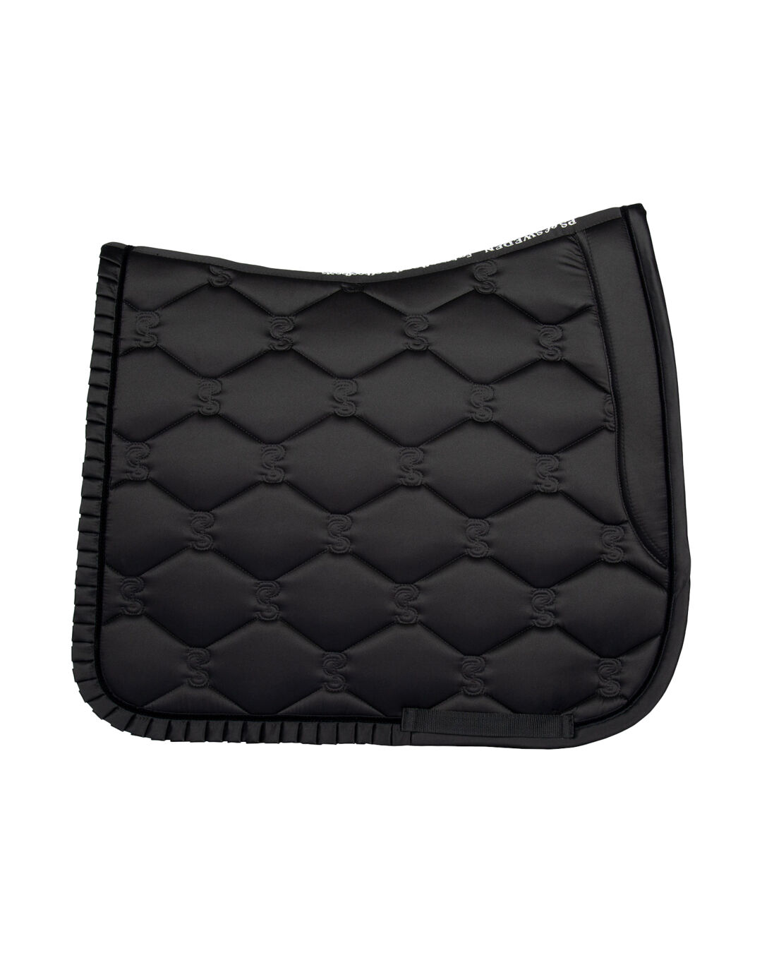 Die Dressurschabracke Ruffle von PS of Sweden ist anatomisch geformt und mit einer eleganten PS-Monogramm-Steppung versehen.