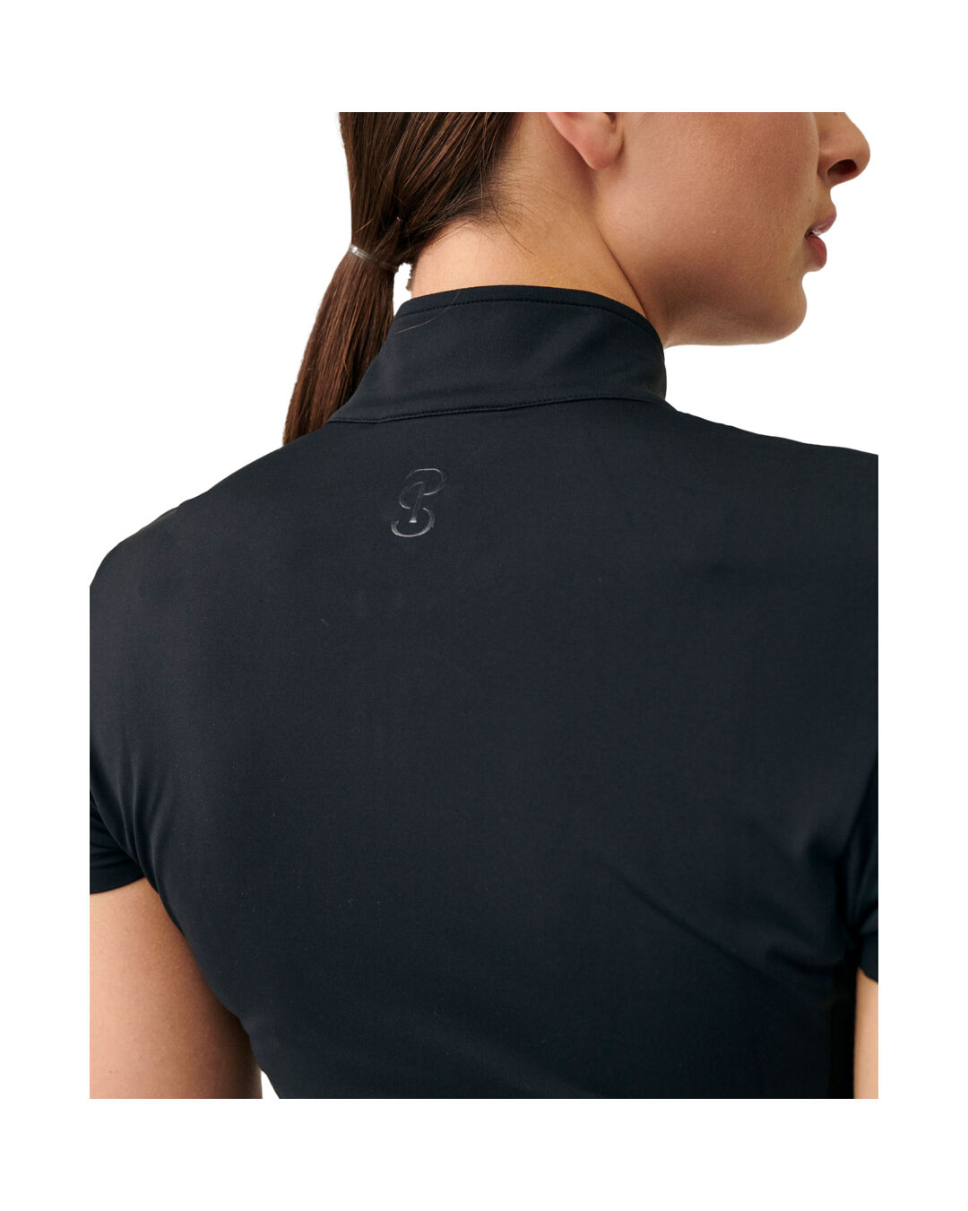 Der halbe Reißverschluss mit PS-Logo-Metallschieber in glänzendem Gun-Metal-Finish verleiht dem Shirt eine hochwertige Optik. Ein Ton-in-Ton-Silikon-Monogrammdruck auf dem Rücken rundet das Design ab. Der doppellagige Stehkragen bietet zusätzlichen Komfort und Struktur.
