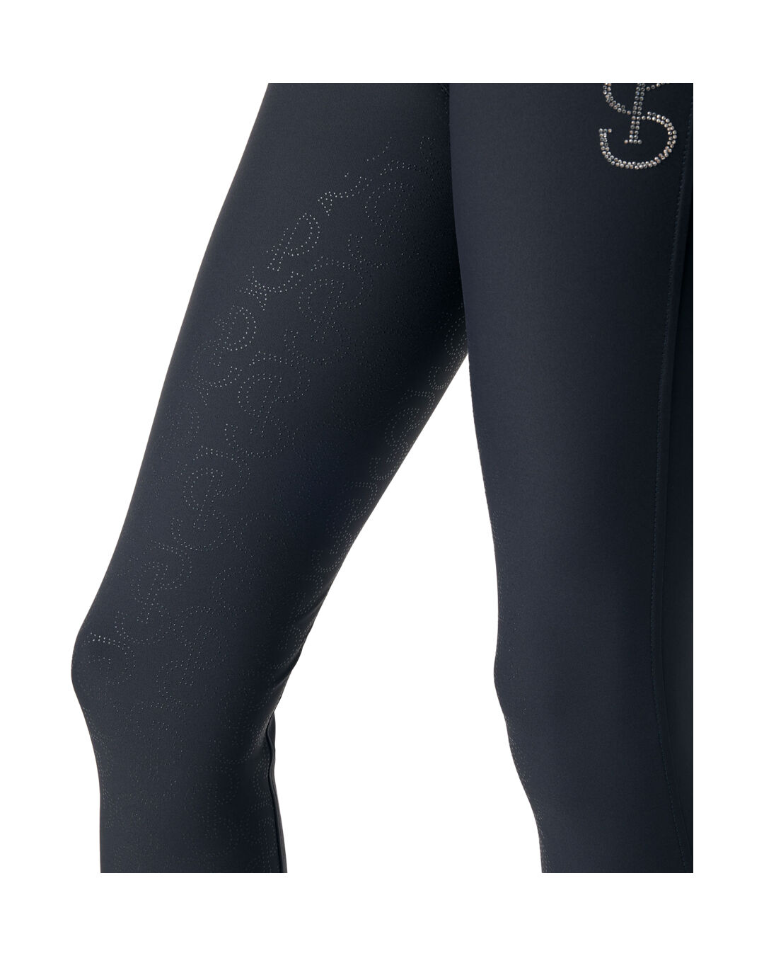 Der extra breite Bund mit Haken- und Ösenverschluss sorgt für eine stabile Passform und hohen Tragekomfort, während der elastische Beinabschluss für einen nahtlosen Übergang in den Stiefel sorgt. Der glatte, tonale Full Grip-Besatz mit PS-Monogramm gibt dir optimalen Halt im Sattel, ohne deine Bewegungsfreiheit einzuschränken. Abgerundet wird das Design durch ein elegantes Logo mit funkelnden Kristallen – ein dezenter Hingucker, der die edle Optik unterstreicht.